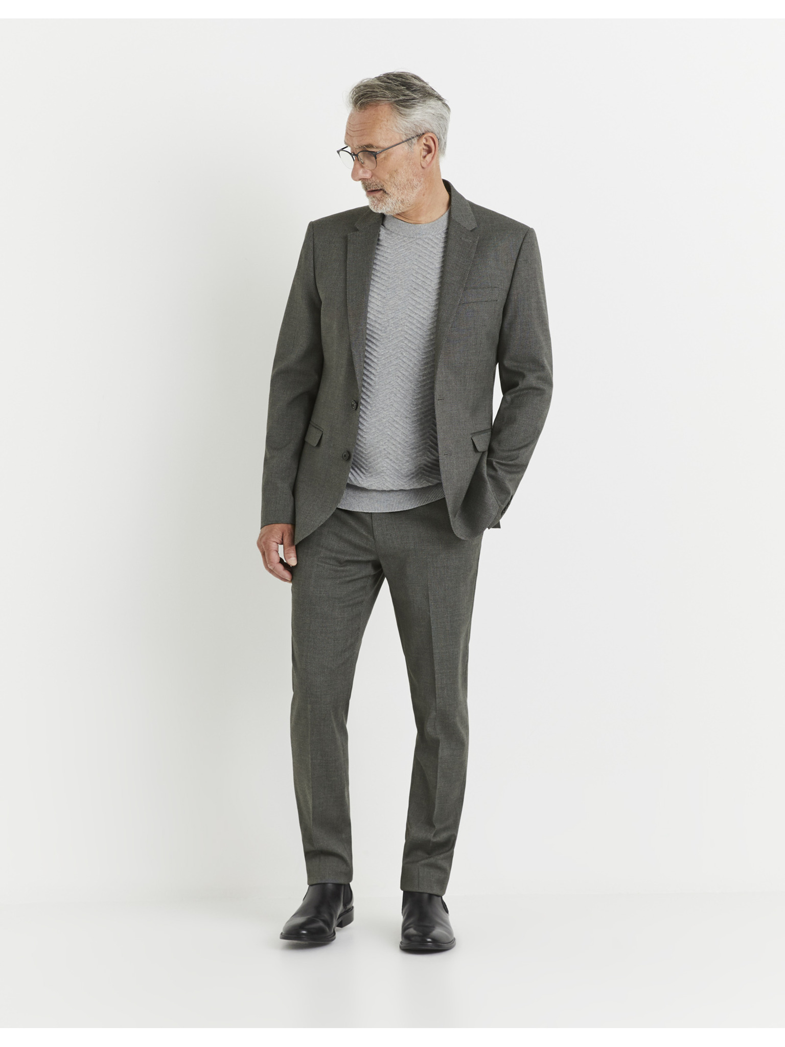 Sacou gri SLIM din țesătură fin structurată pentru bărbați