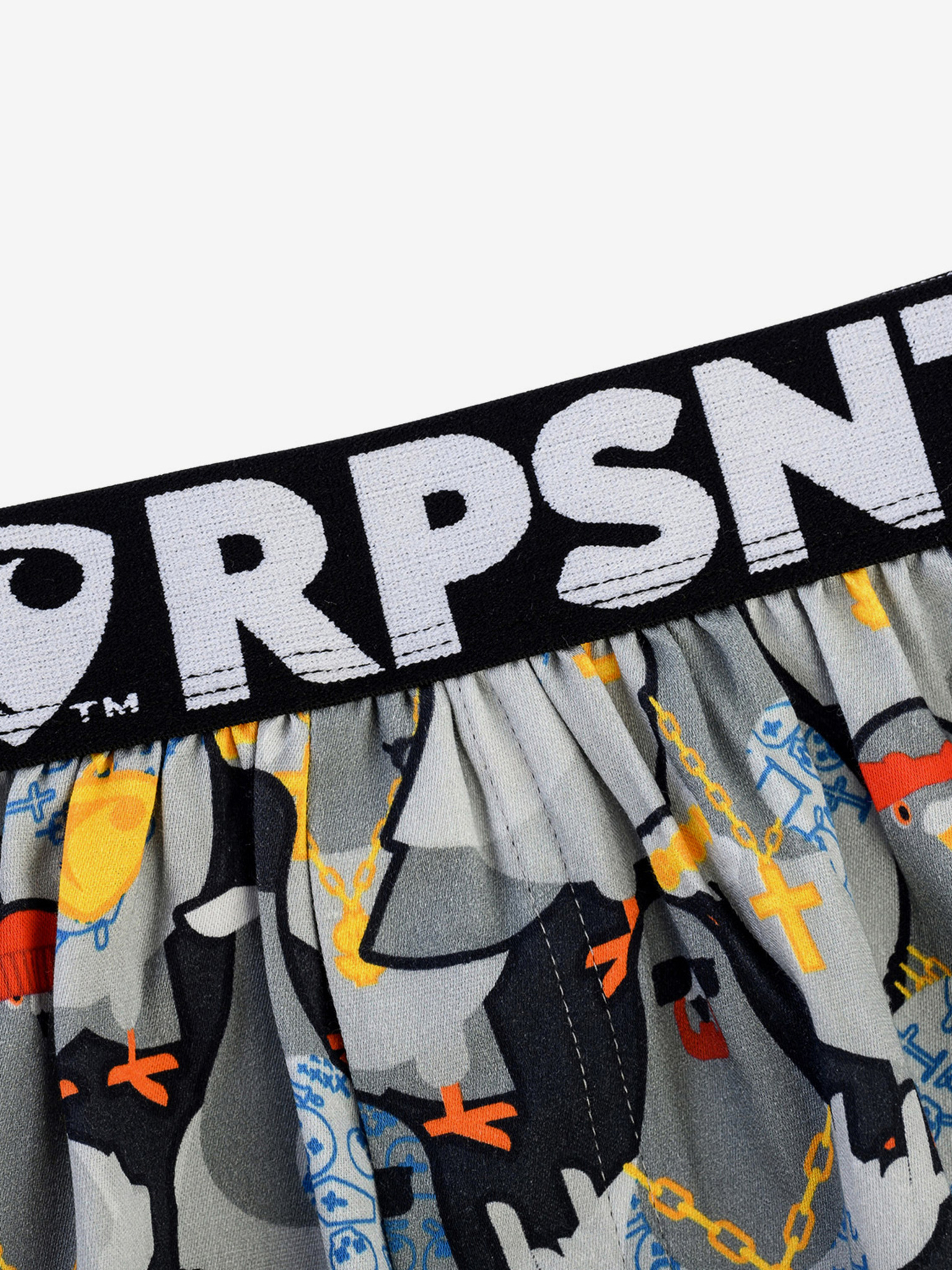Pantaloni scurți de Halloween Styx portocalii și gri pentru bărbați - coșciuge