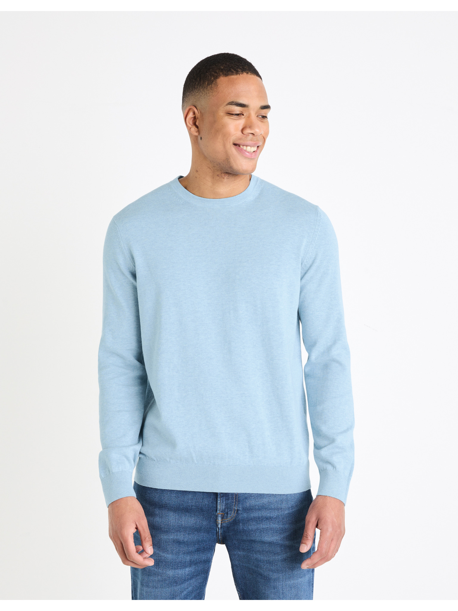Pulover basic albastru închis pentru bărbați Celio Decotonv