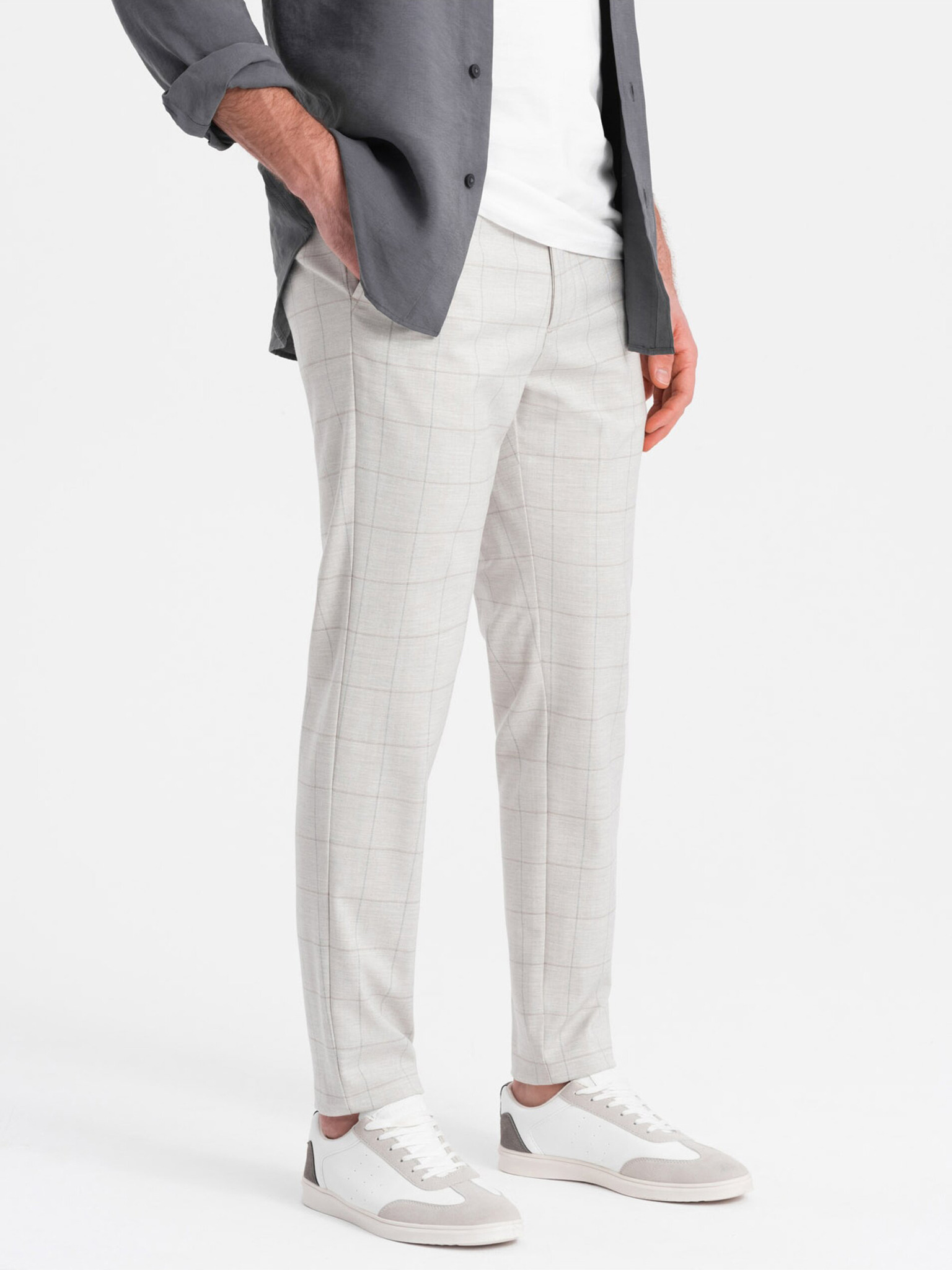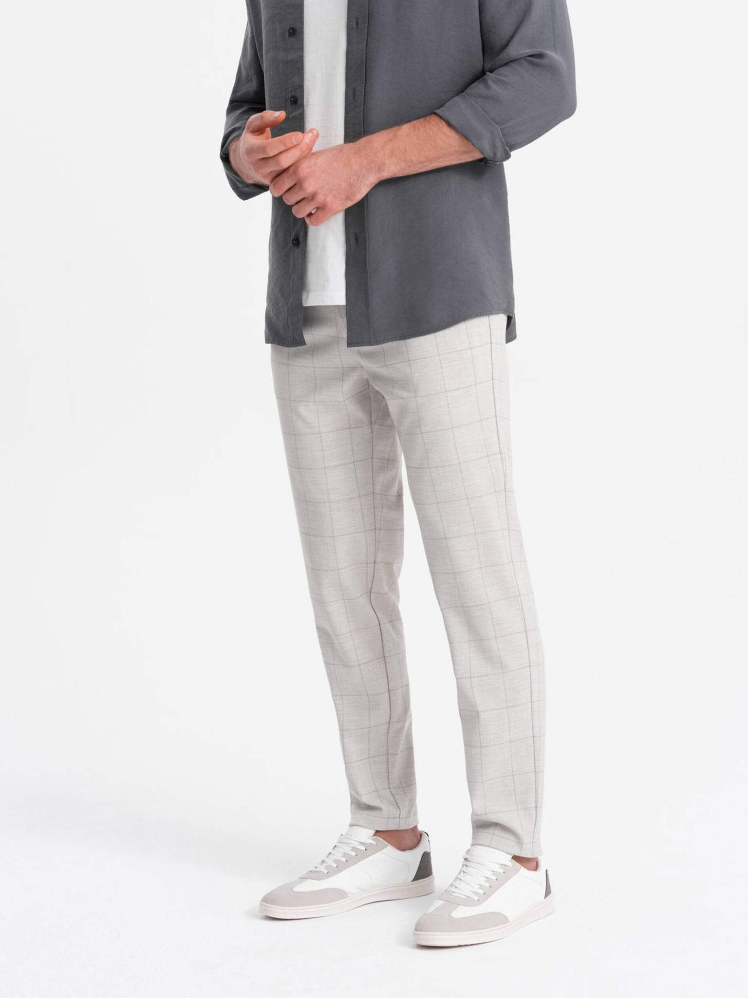 Pantaloni în carouri gri pentru bărbați Ombre Clothing