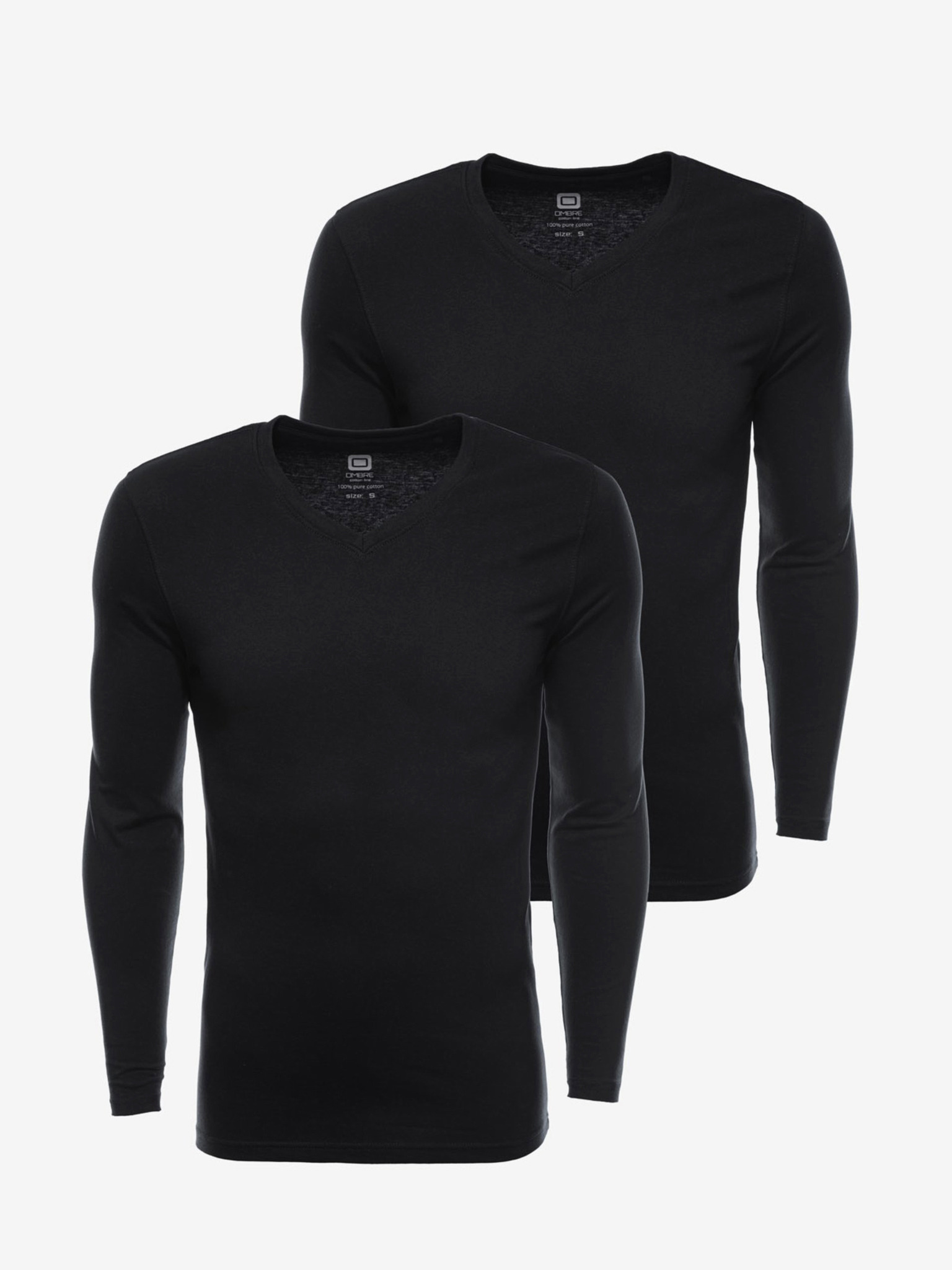 Tricou bărbătesc LOOSE FIT din bumbac cu mânecă lungă și gât rotund - negru V1 OM-LSBC-0129 Ombre Clothing