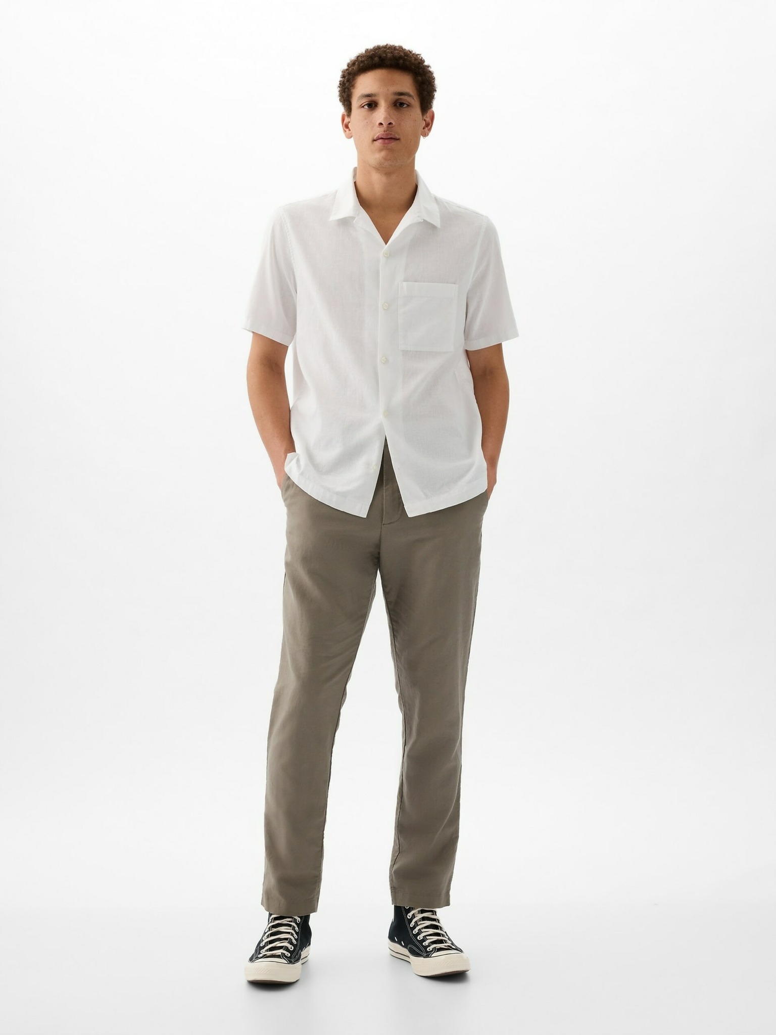 Cămașă de in albă pentru bărbați Celio Damopoc