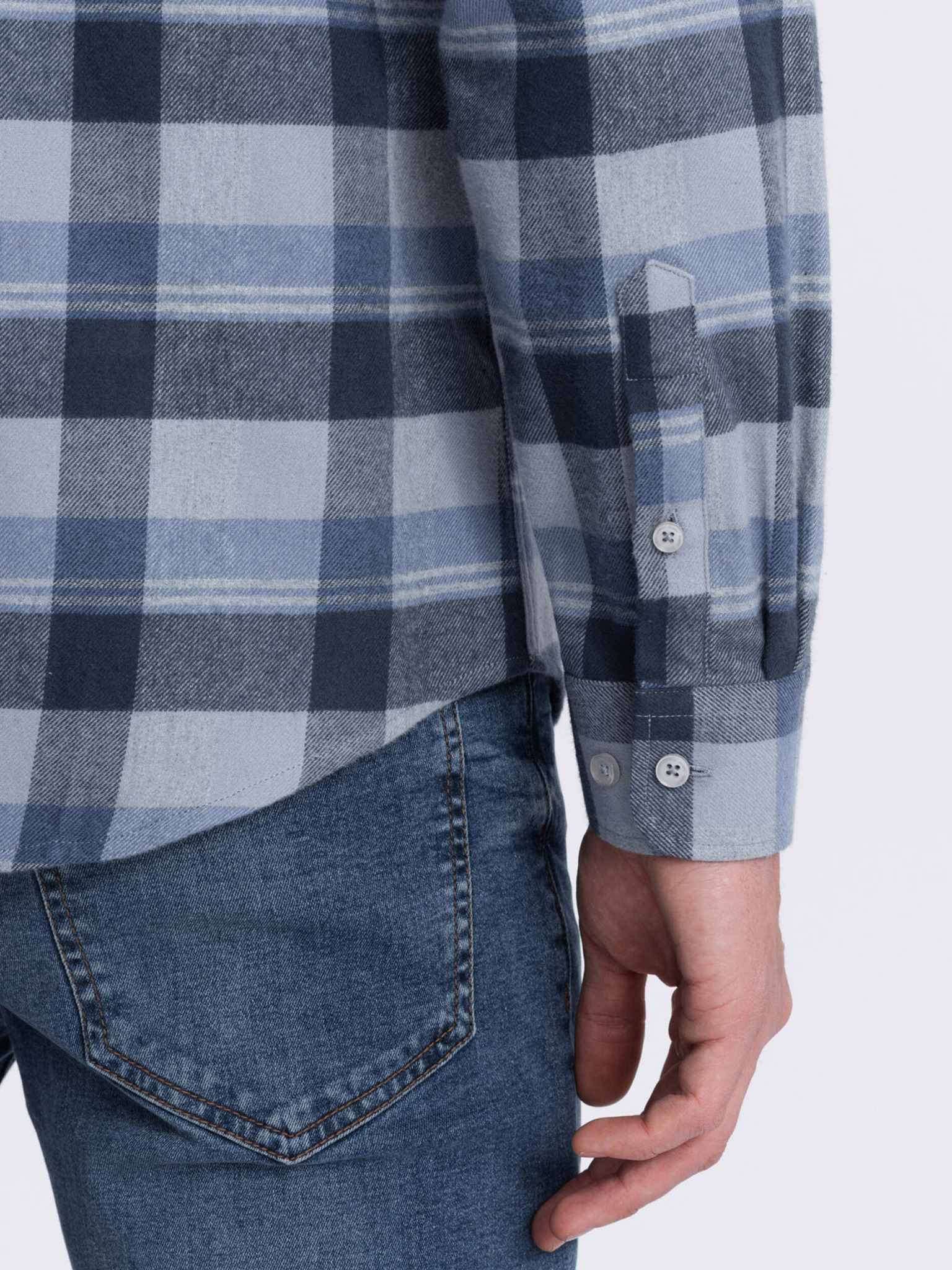 Cămașă din flanel în carouri albastru închis pentru bărbați Ombre Clothing