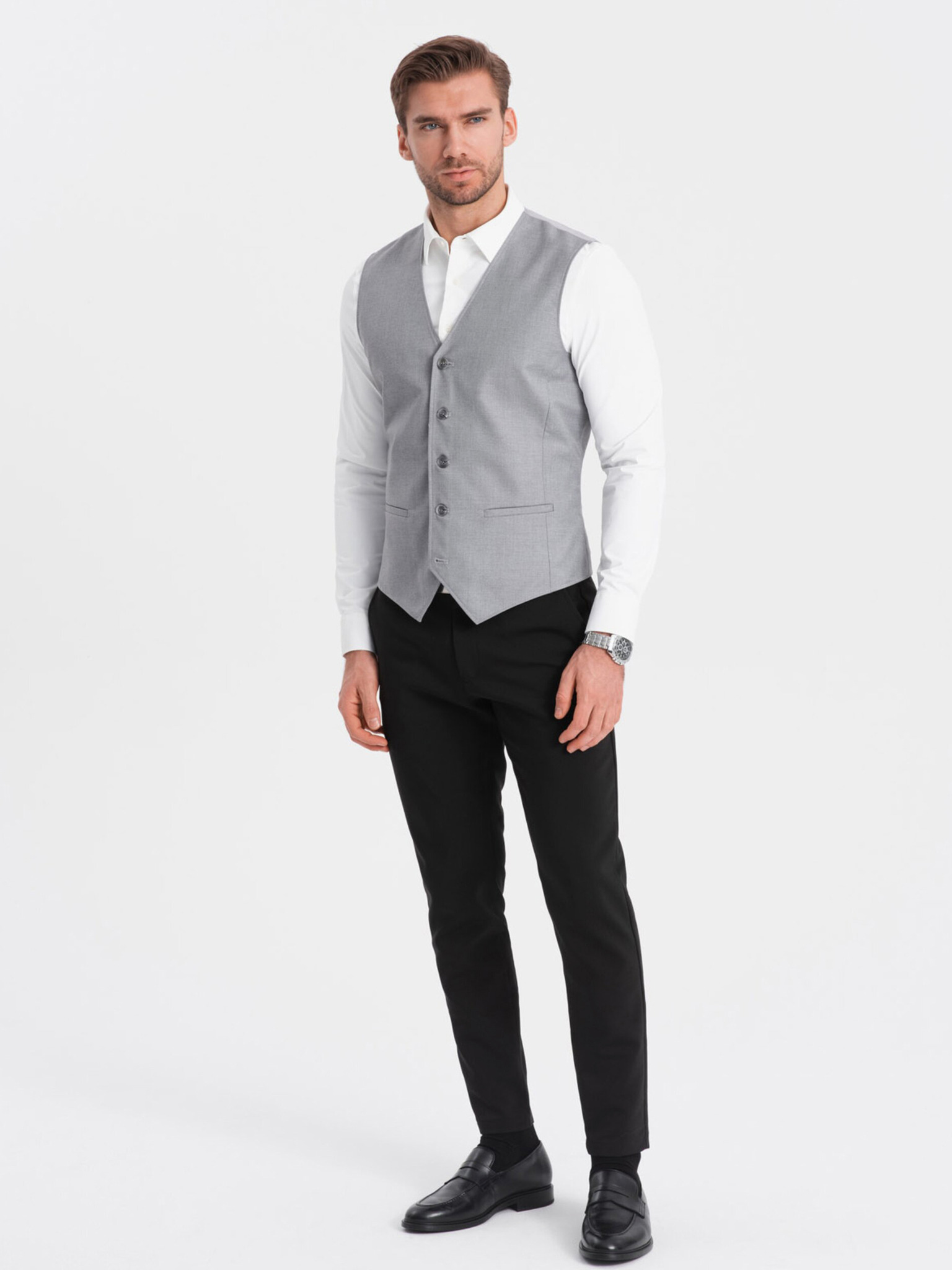 Vestă elegantă slim-fit pentru bărbați cu elastan și revere Ombre Clothing