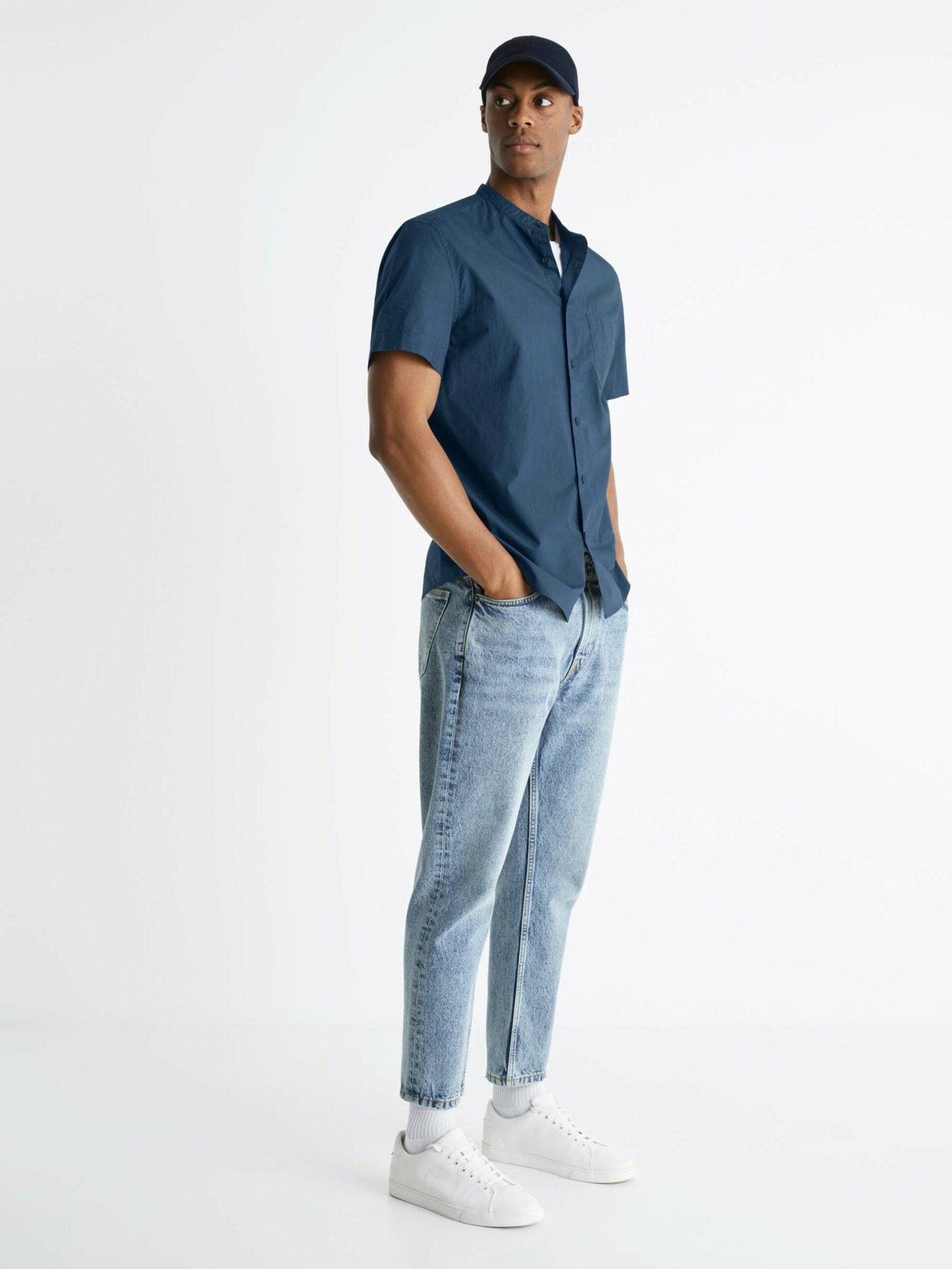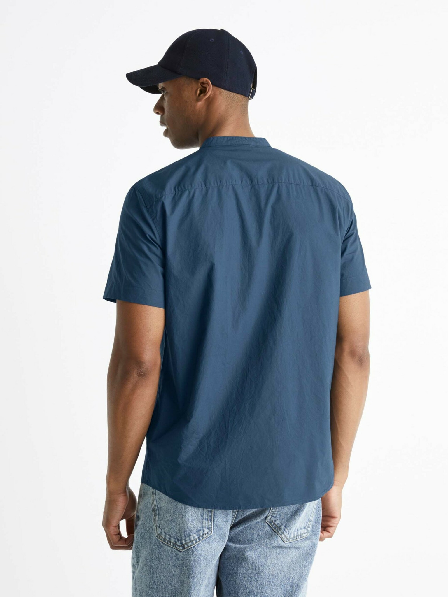 Cămașă cu mânecă scurtă Celio Barik albastru închis pentru bărbați