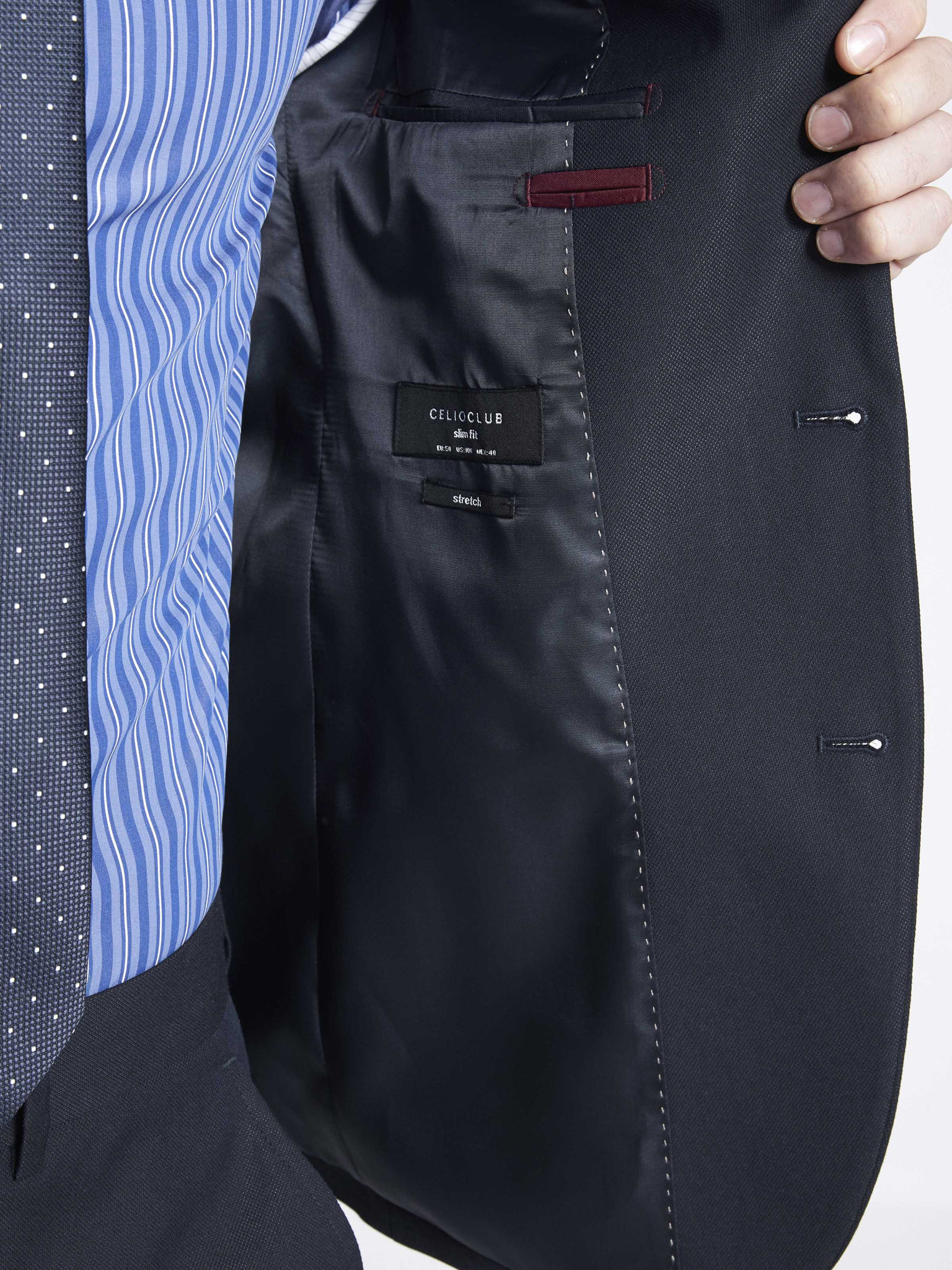 Sacou albastru SLIM cu textură fină pentru bărbați