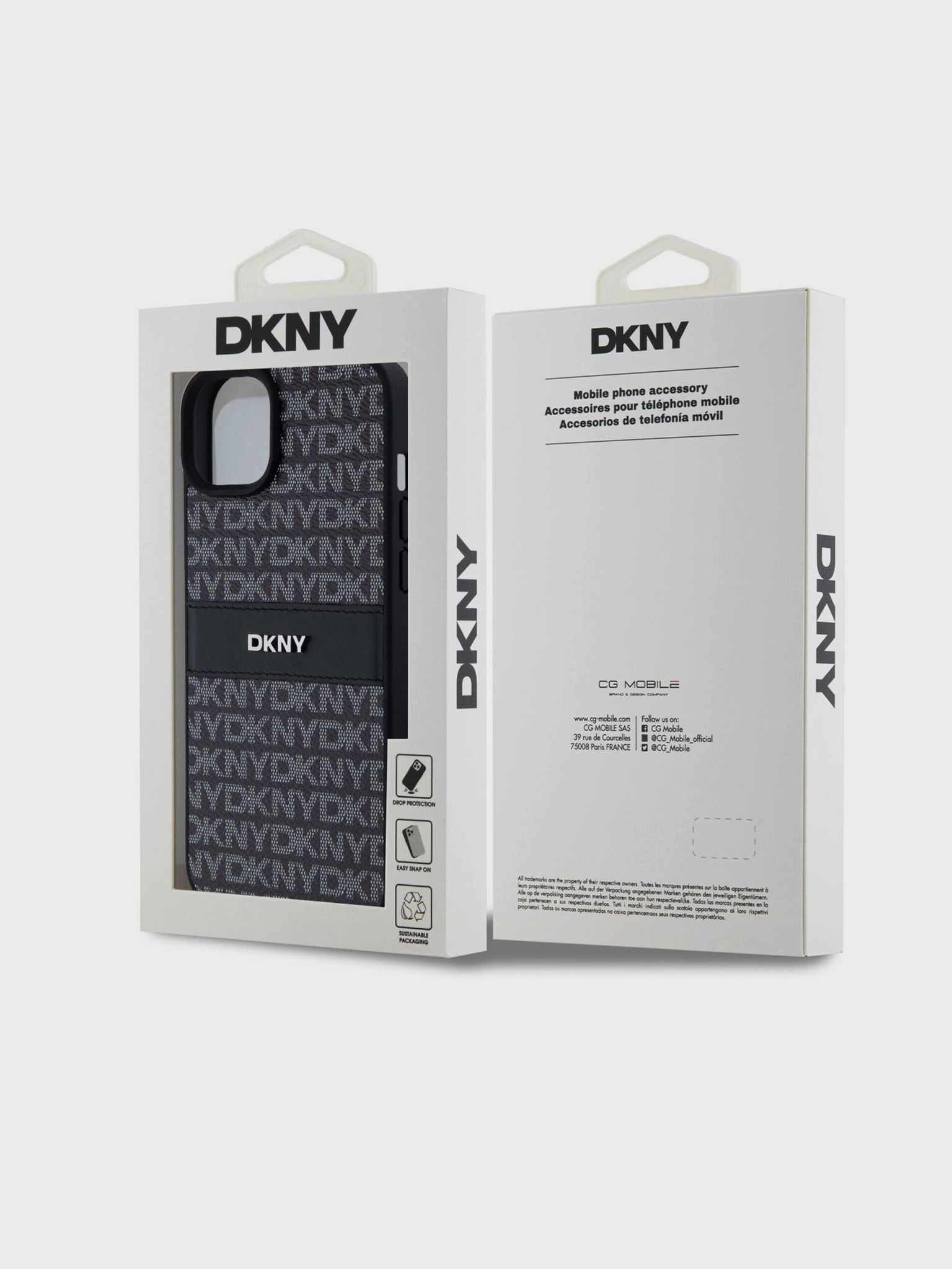 DKNY PC/TPU Repeat Pattern Tonal Stripe Magsafe Back Cover pentru iPhone 16 negru