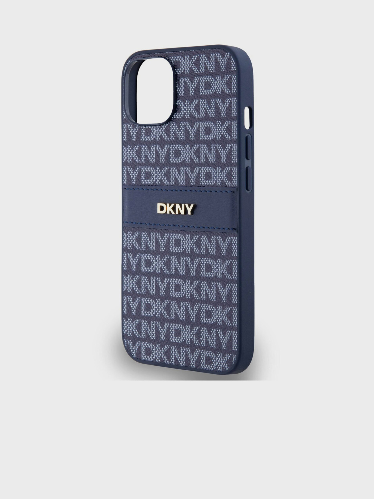 PU Leather Repeat Pattern Tonal Stripe Back Cover pentru iPhone 15 albastru DKNY