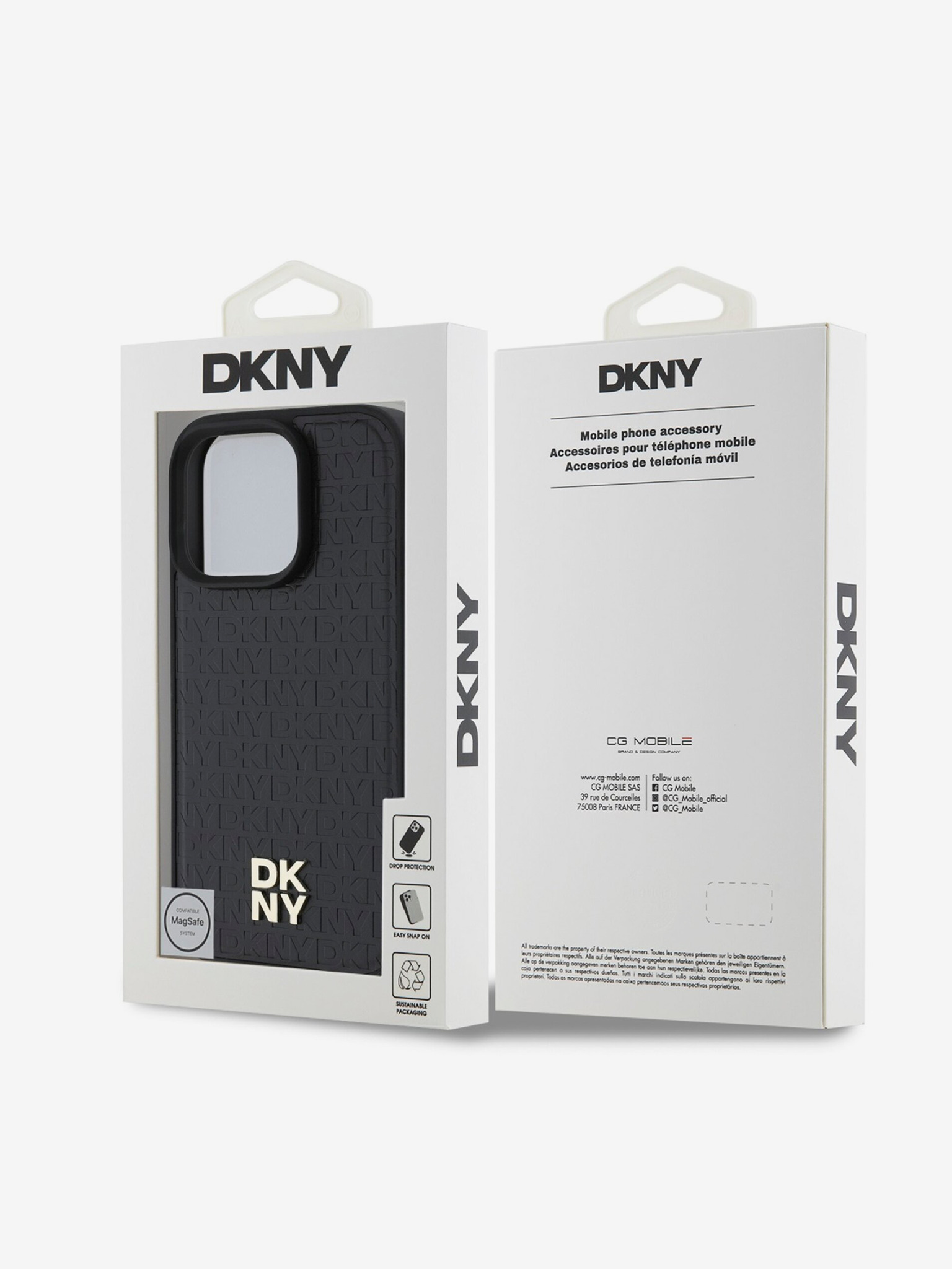 DKNY PC/TPU Repeat Pattern Tonal Stripe Magsafe Back Cover pentru iPhone 16 Pro negru