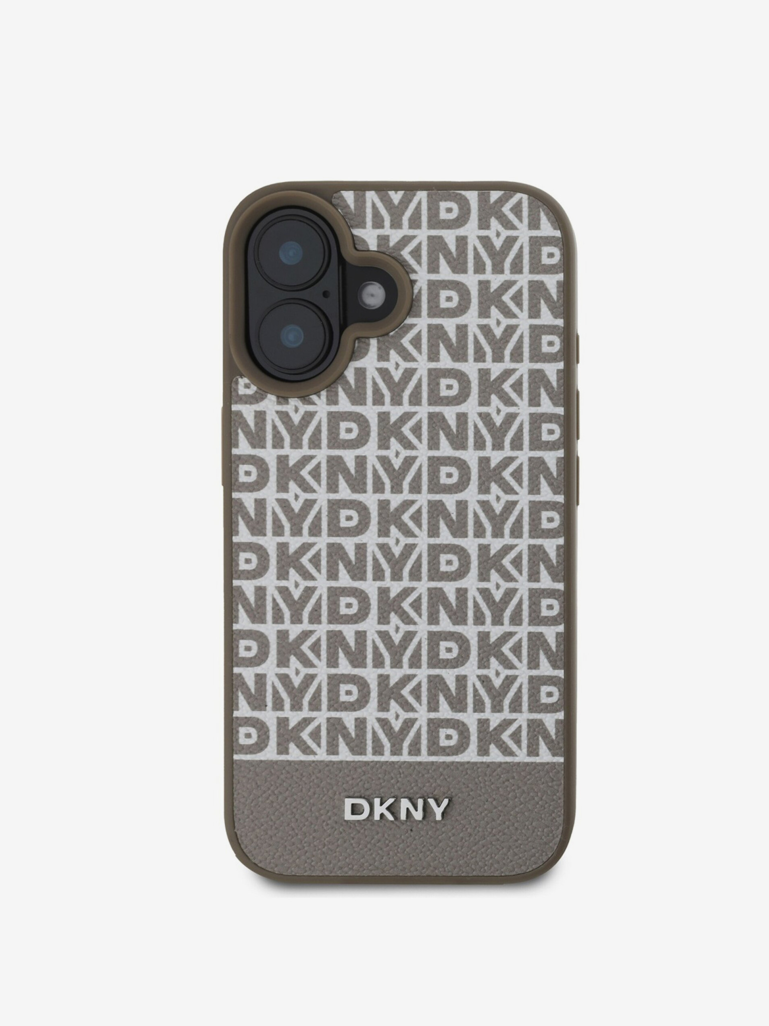 DKNY PU din piele Silver Metal Logo Magsafe Back Cover pentru iPhone 16 Pro negru