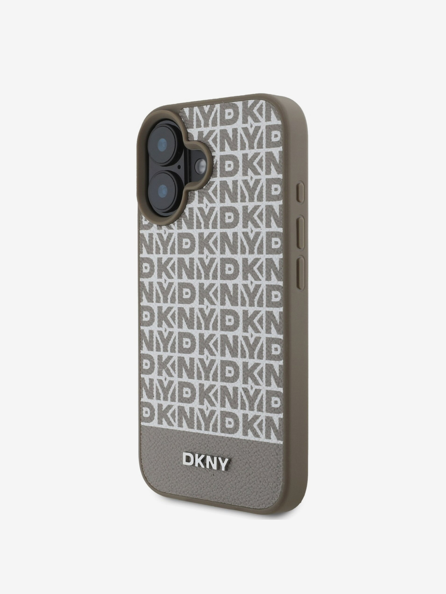 DKNY PU Leather Quilted Stack Logo Back Cover pentru iPhone 16 Plus gri