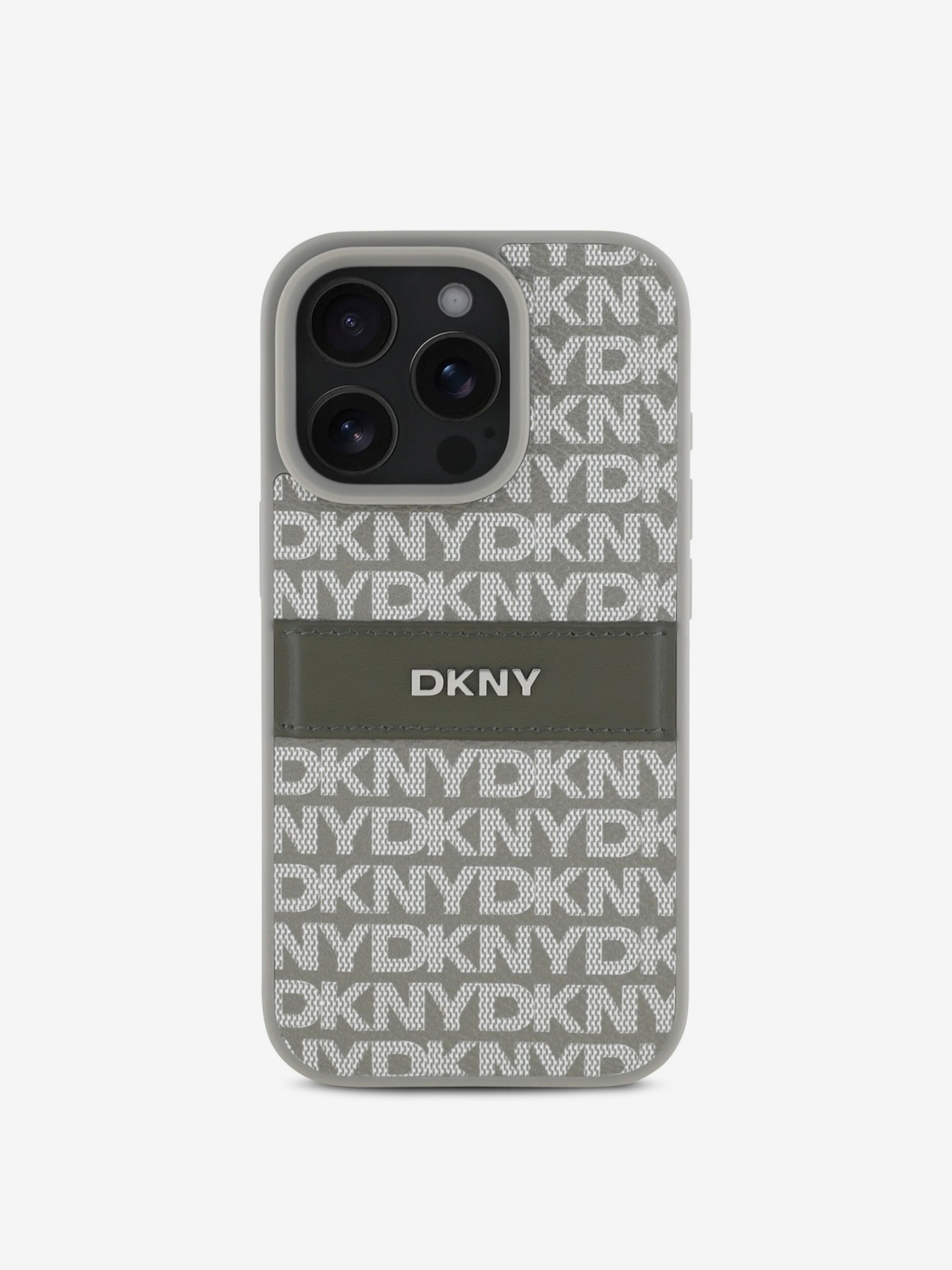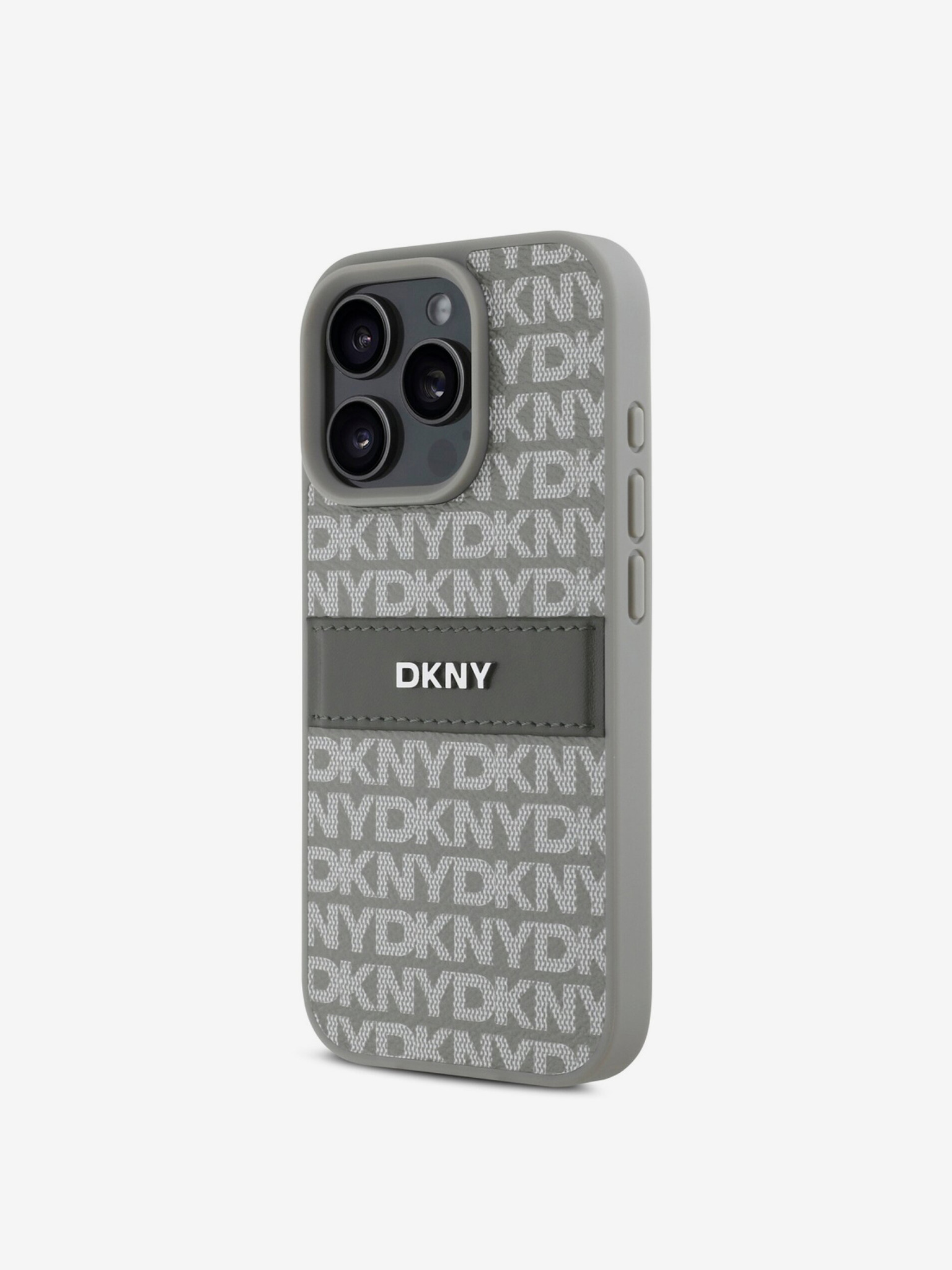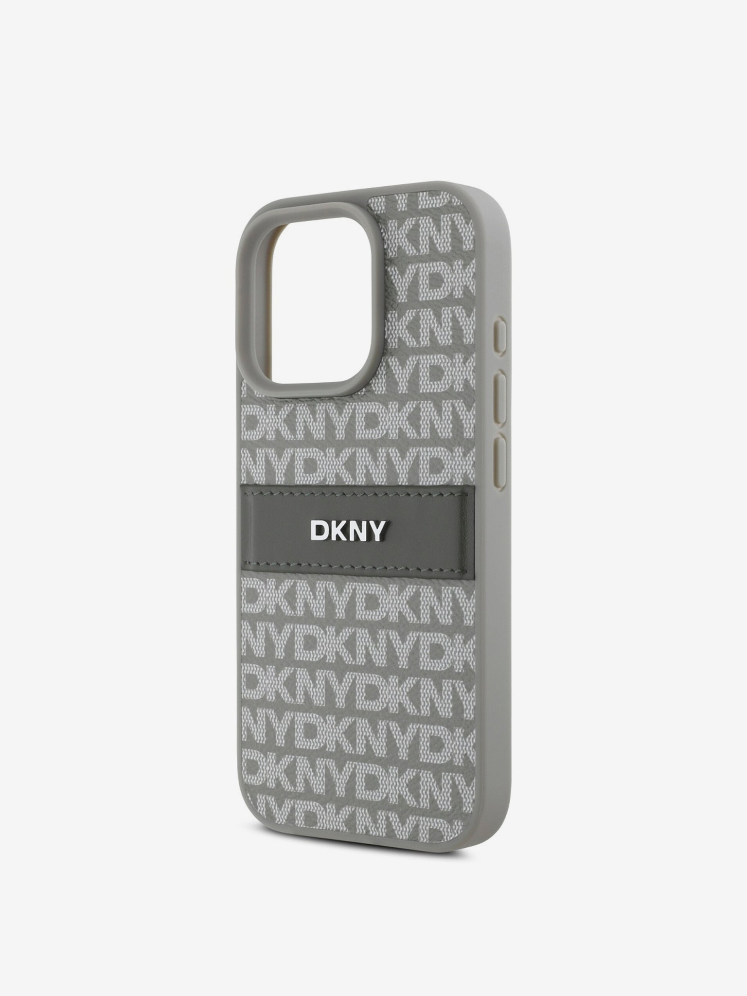 DKNY PU Leather Quilted Stack Logo Back Cover pentru iPhone 16 Pro Max gri