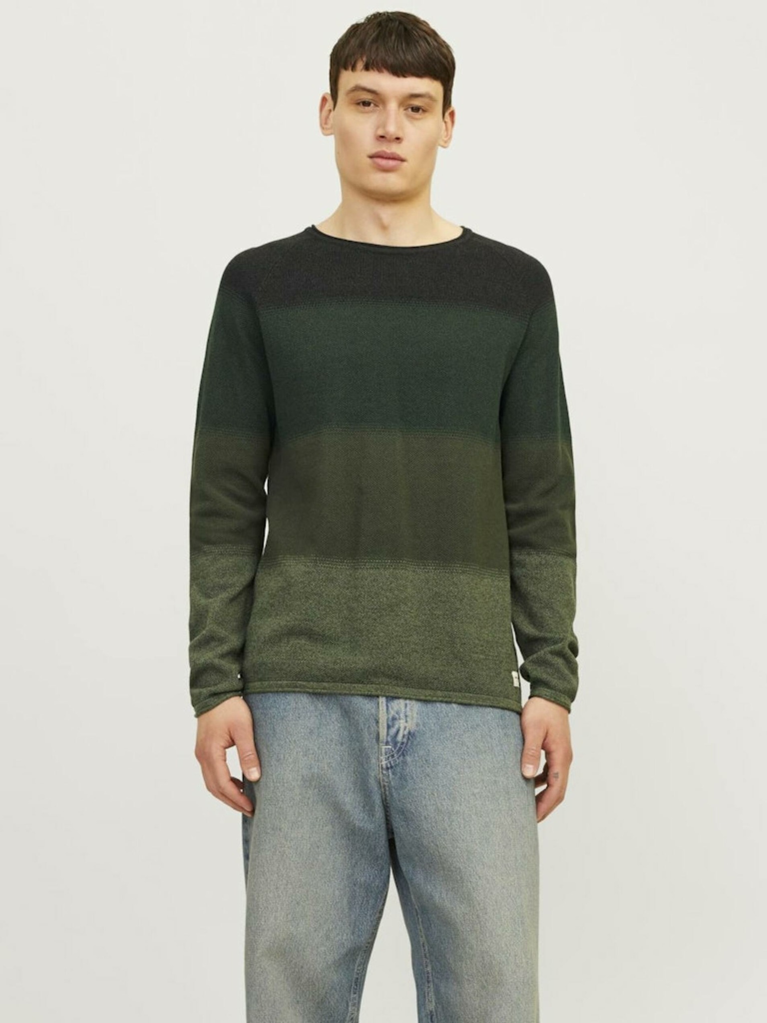 Pulover casual bărbătesc cu dungi orizontale verde Ombre Clothing
