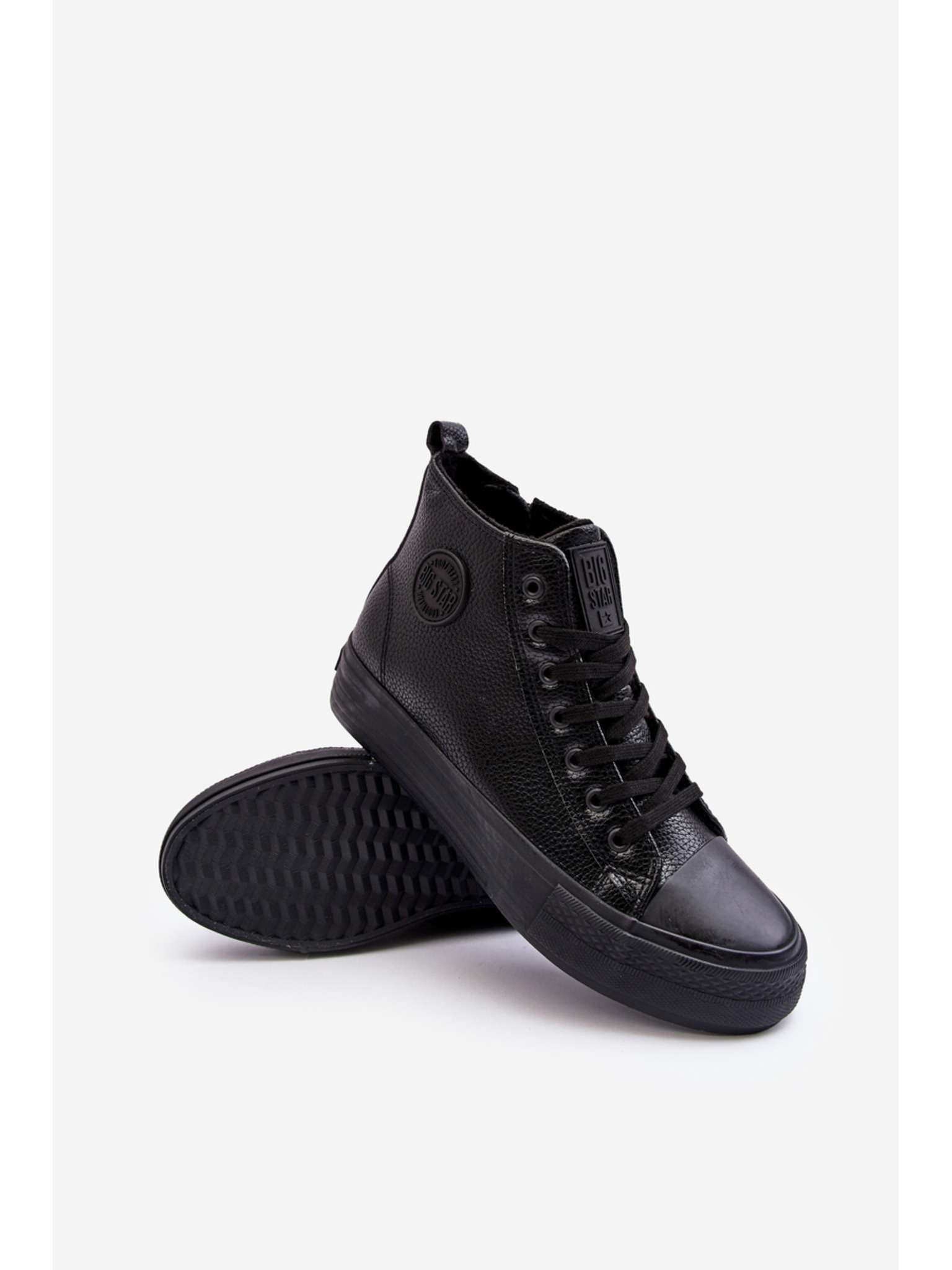 Pantofi bărbătești cu toc înalt din piele ecologică lucioasă negru Ombre Clothing