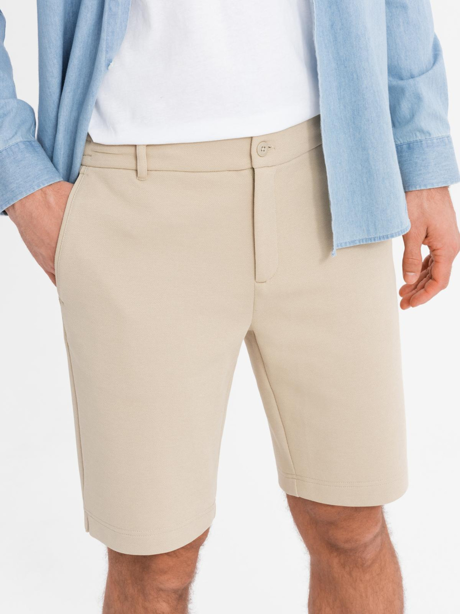 Pantaloni scurți chino clasici bărbătești cu tiv răsfrânt - bej