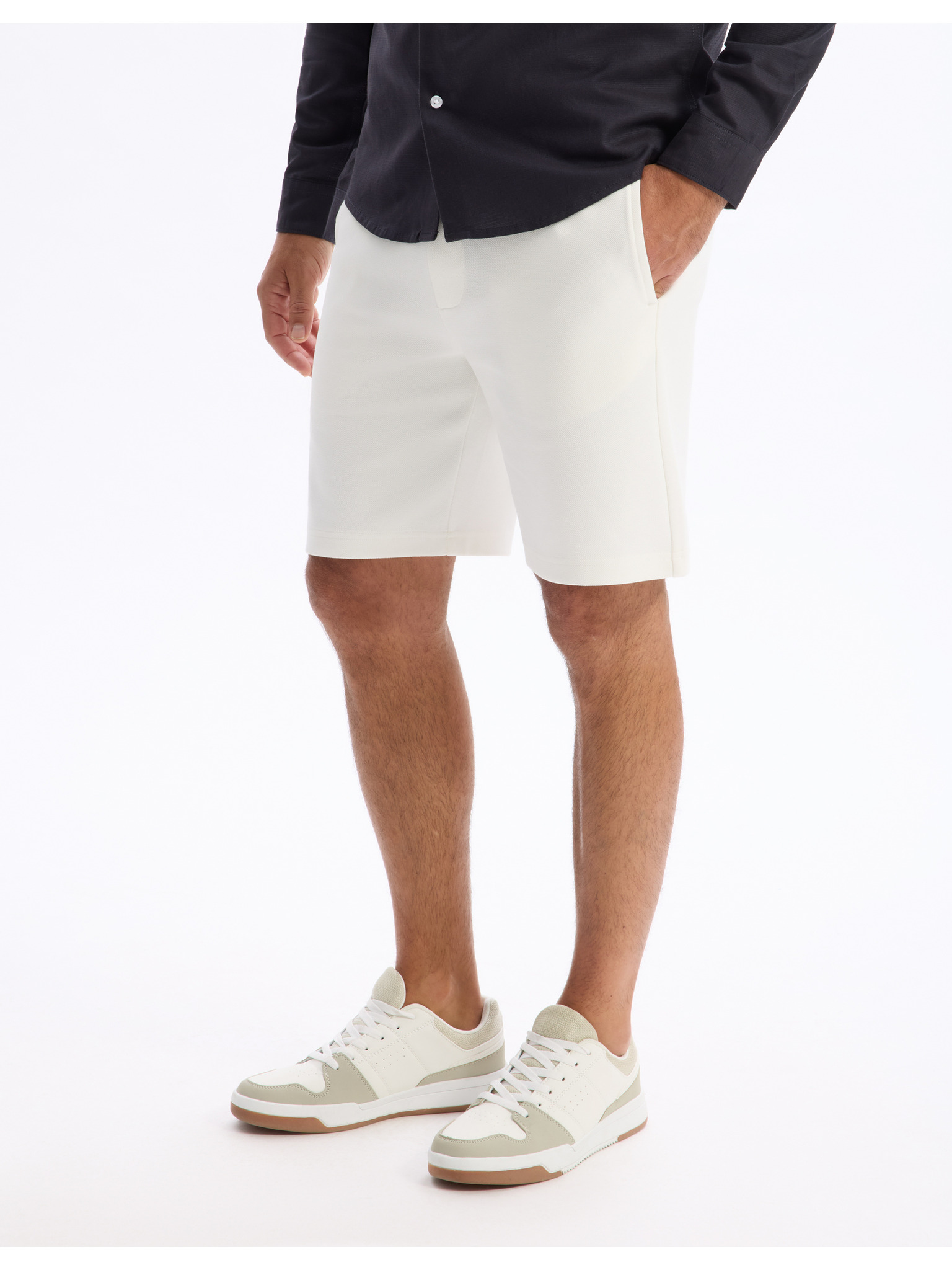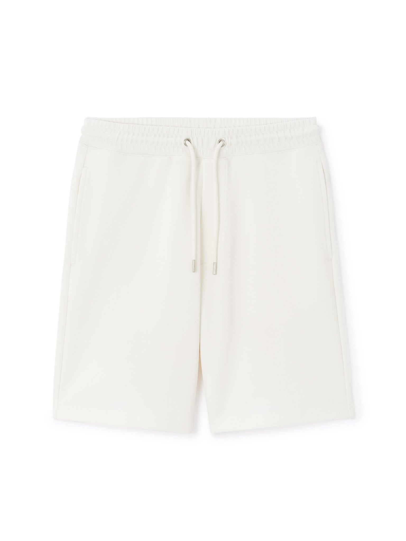 Pantaloni scurți de trening pentru bărbați cu tiv și brâu nervurat - crem