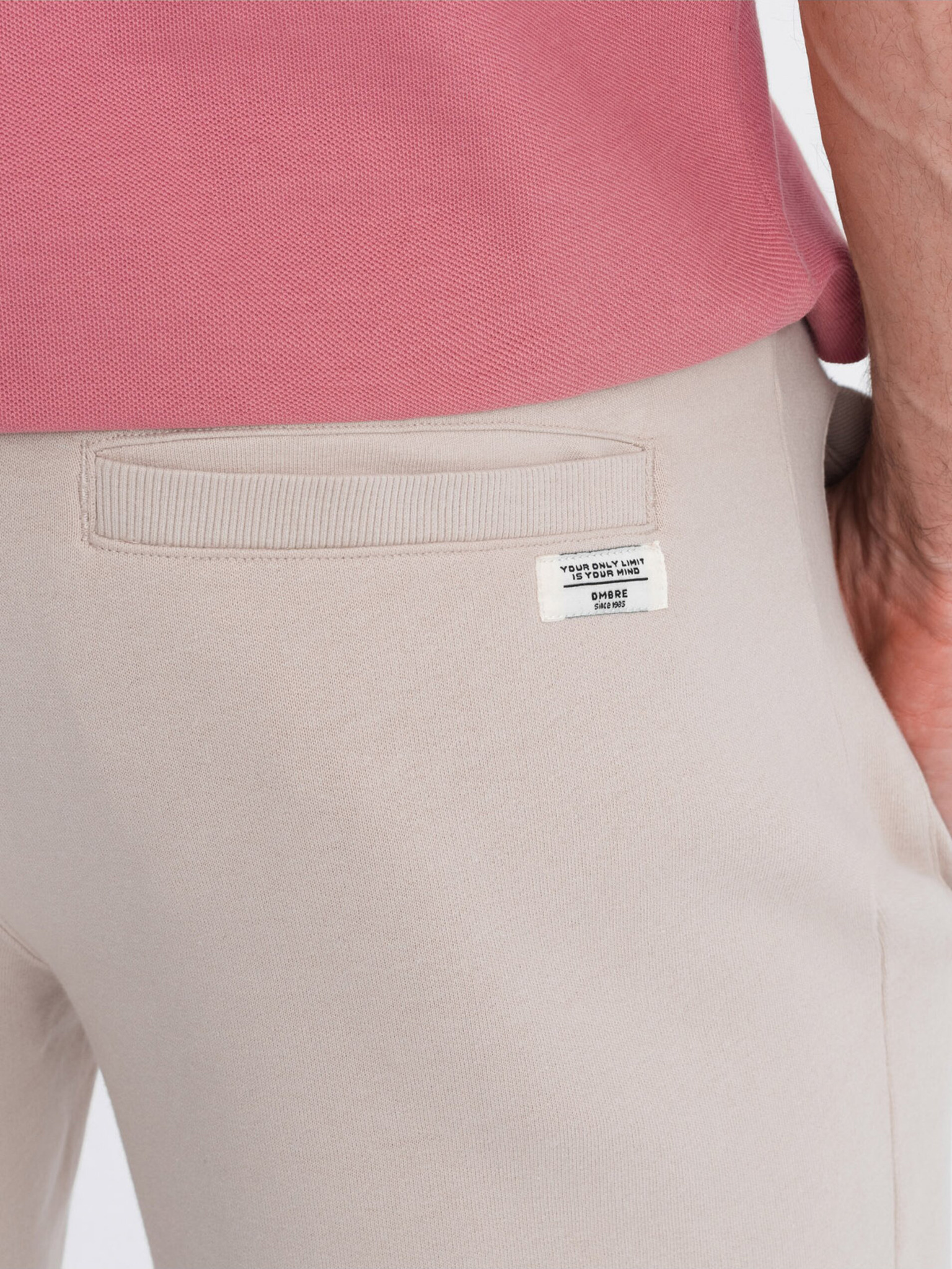Pantaloni scurți de trening din bumbac pentru bărbați BASIC bej Ombre Clothing