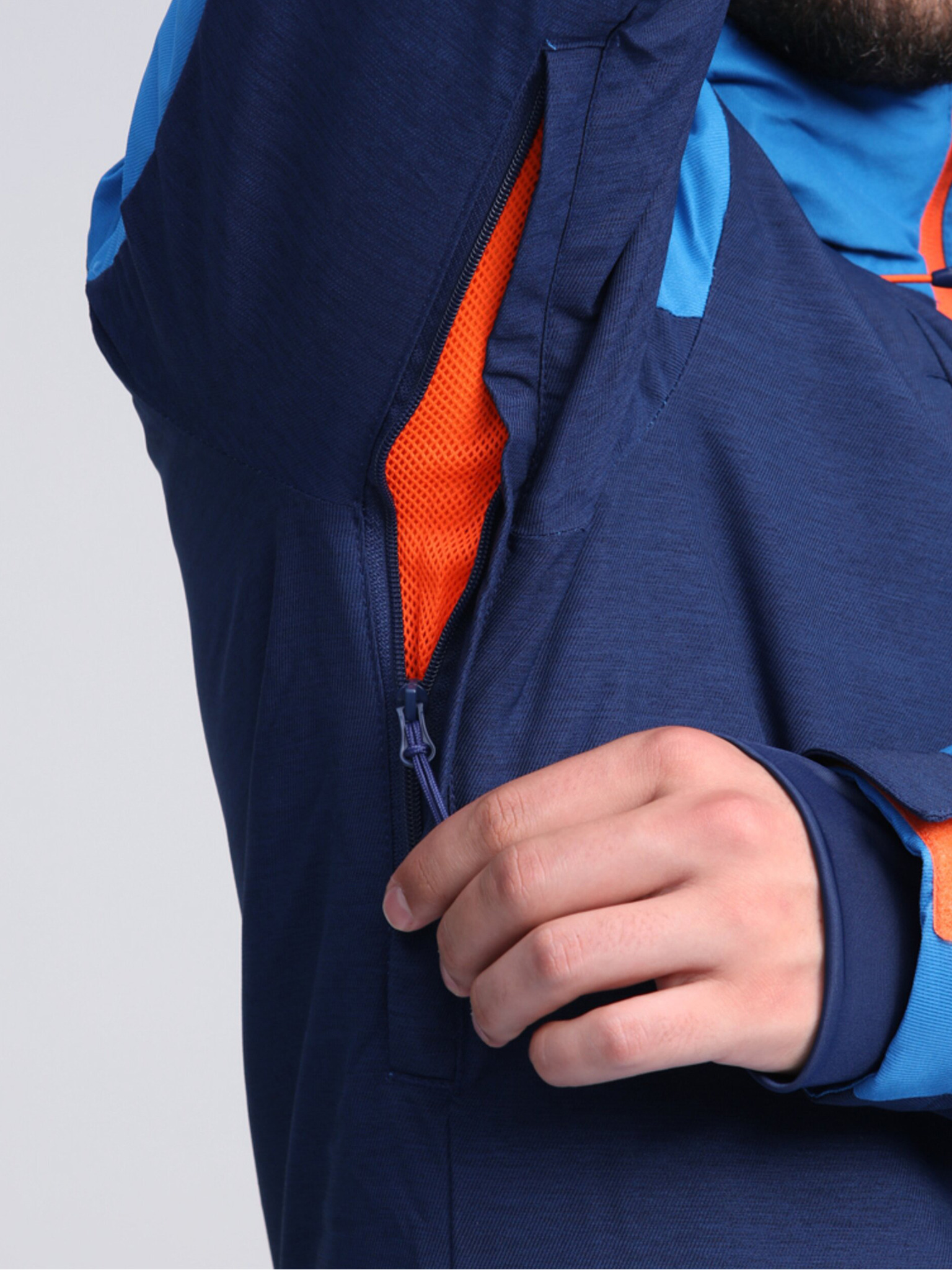 Jachetă bărbătească matlasată cu guler înalt combinată albastru închis Îmbrăcăminte Ombre