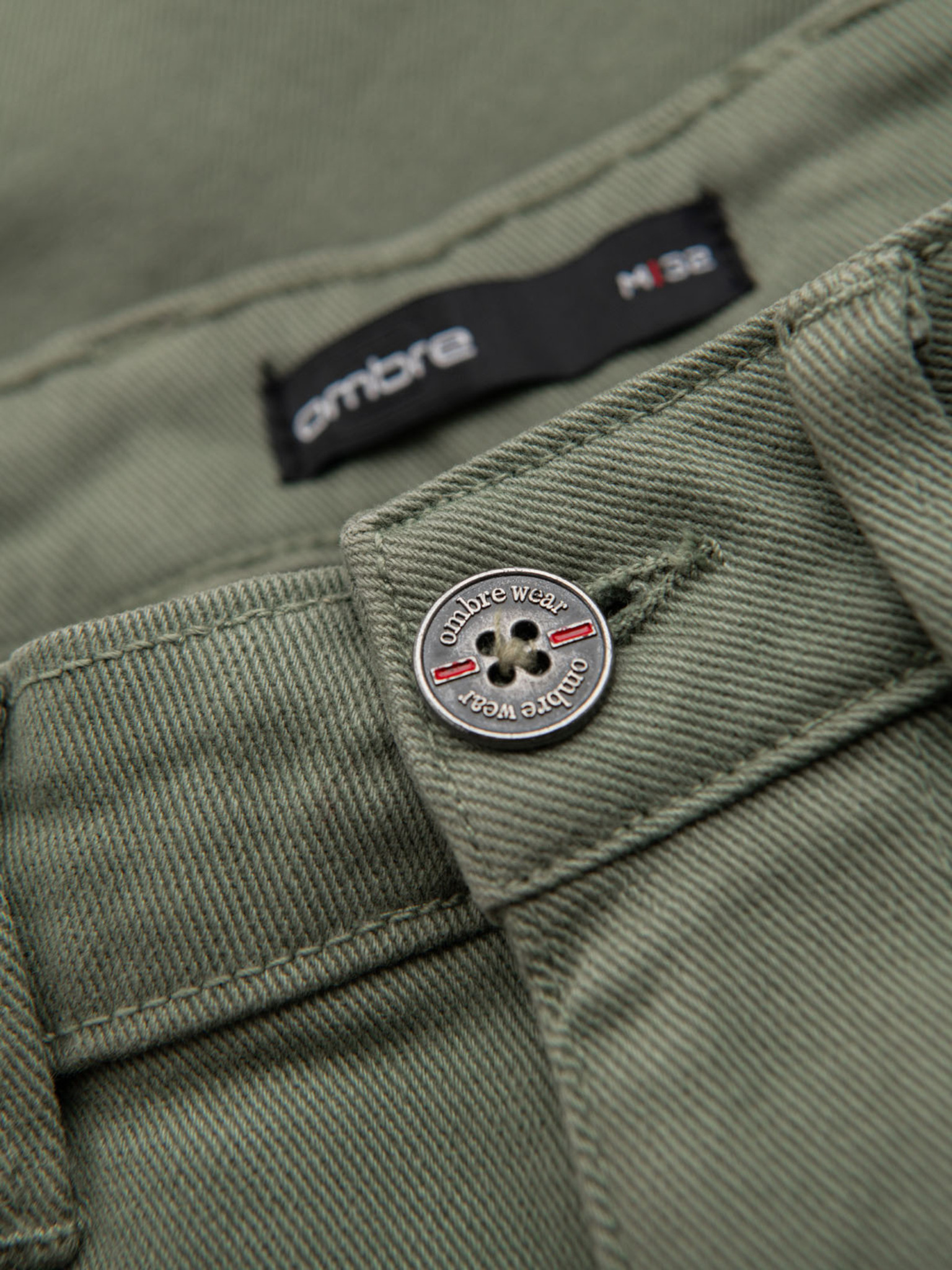 Pantaloni scurți de trening pentru bărbați cu tiv și brâu nervurat - oliv