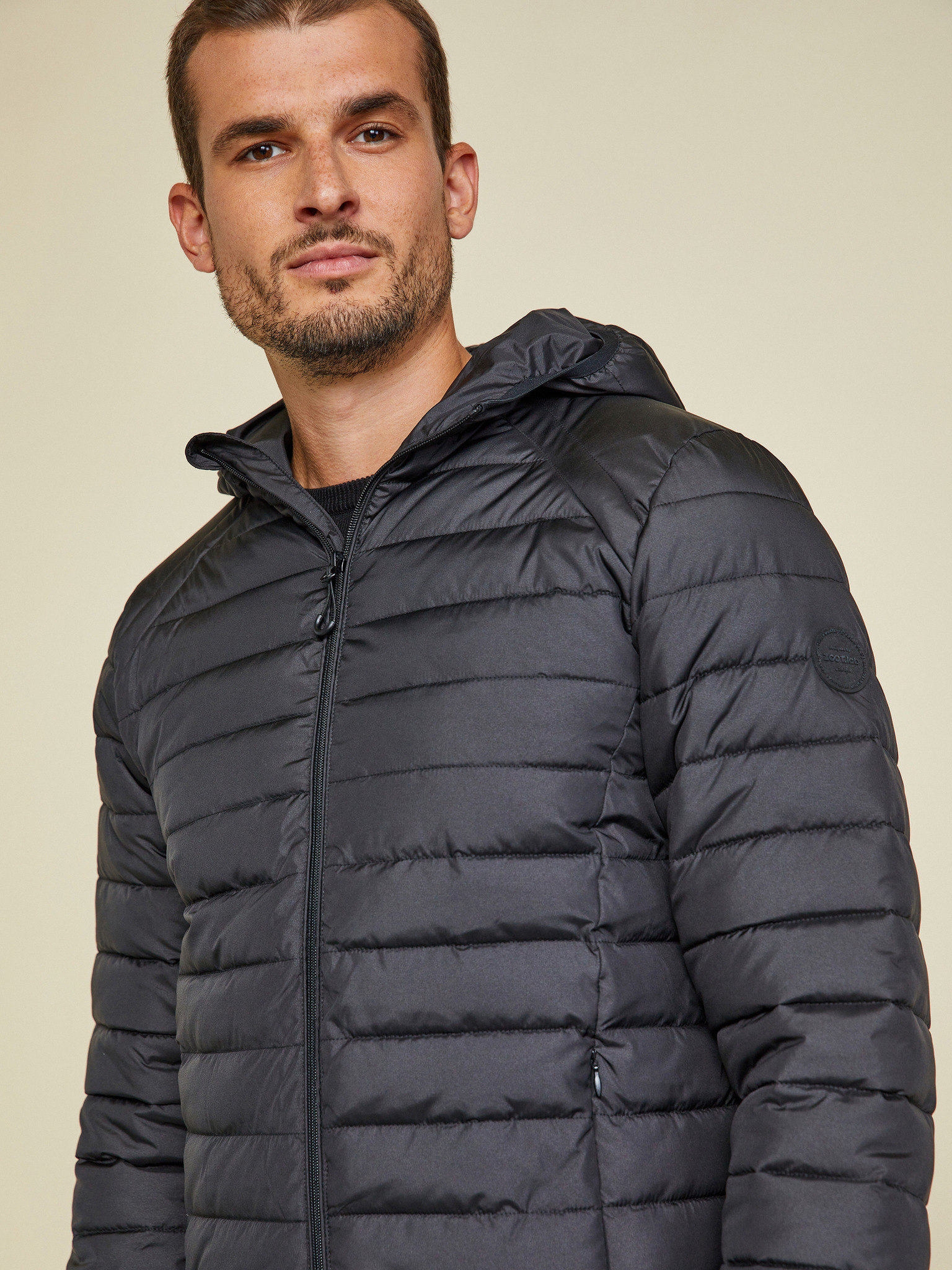 Jachetă combinată matlasată cu guler înalt pentru bărbați negru Ombre Clothing