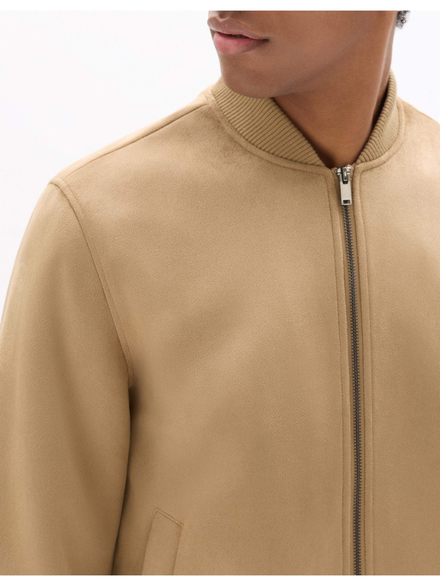 Jachetă bomber din piele de căprioară pentru bărbați - maro V1 OM-JAFL-0232 Ombre Clothing
