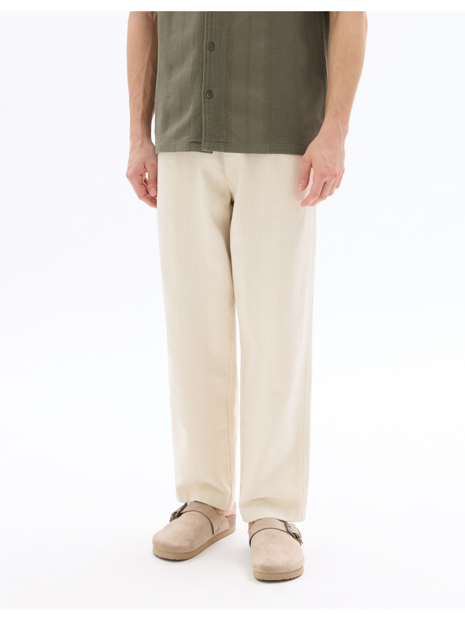 Pantaloni bărbați bej din amestec de in Celio Dolinco
