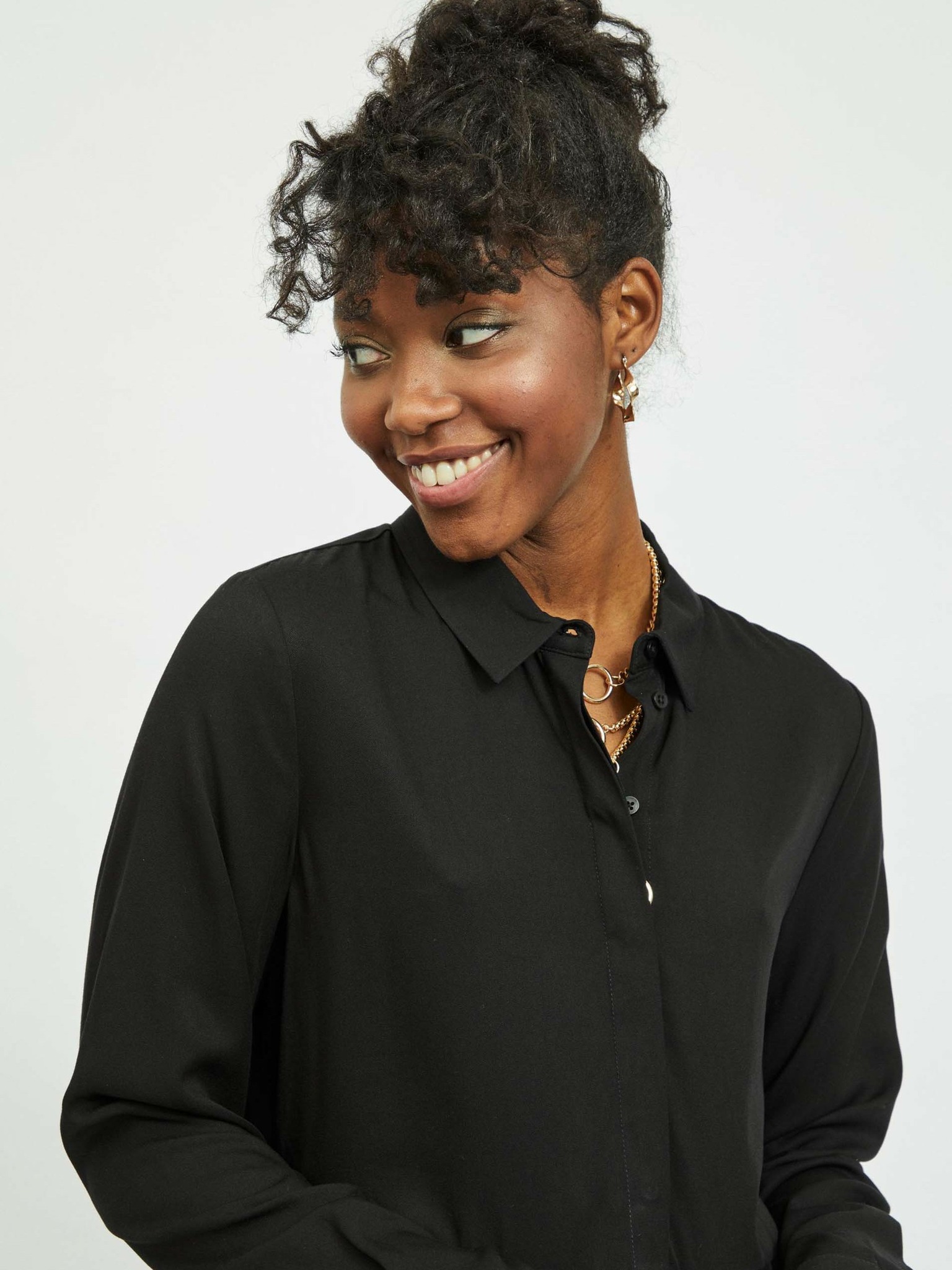Rochie neagră tip cămașă cu mâneci largi