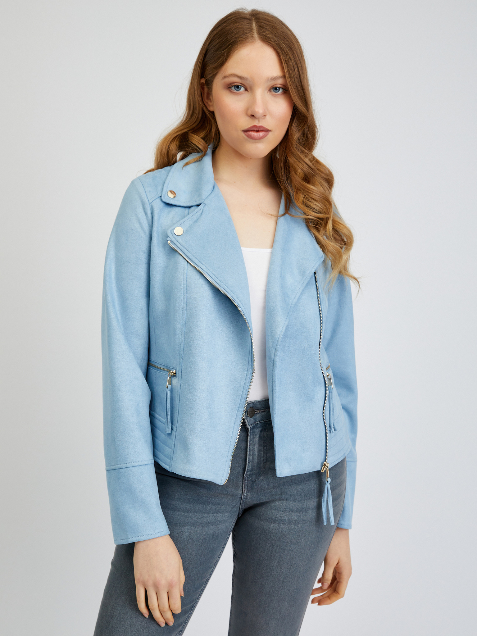 Jachetă din piele întoarsă albastră pentru femei ORSAY