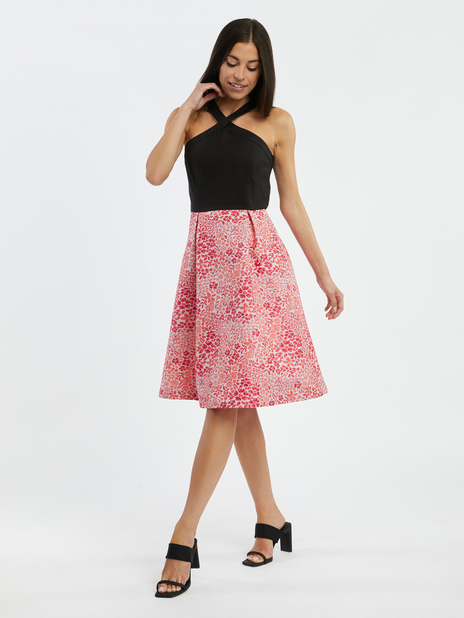Rochie florala damă roz și neagră ORSAY