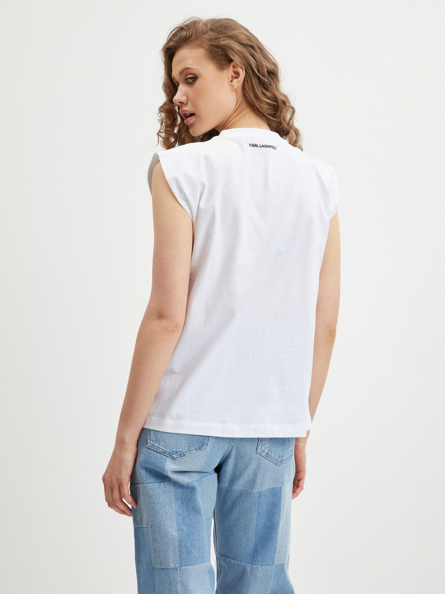 Tricou alb cu model pentru femei KARL LAGERFELD