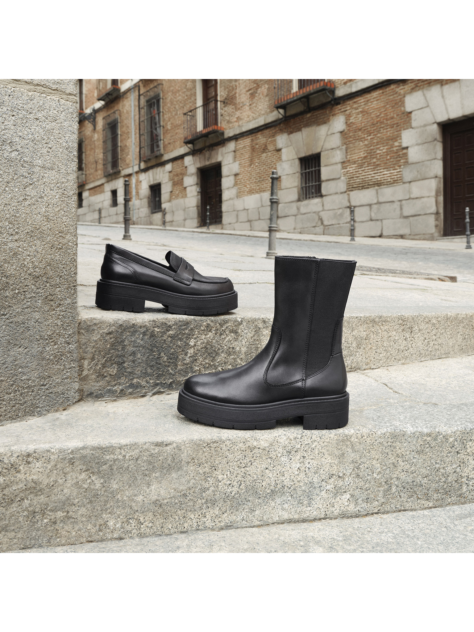 Mocasini cu platformă din piele, negri, pentru femei Geox Vilde