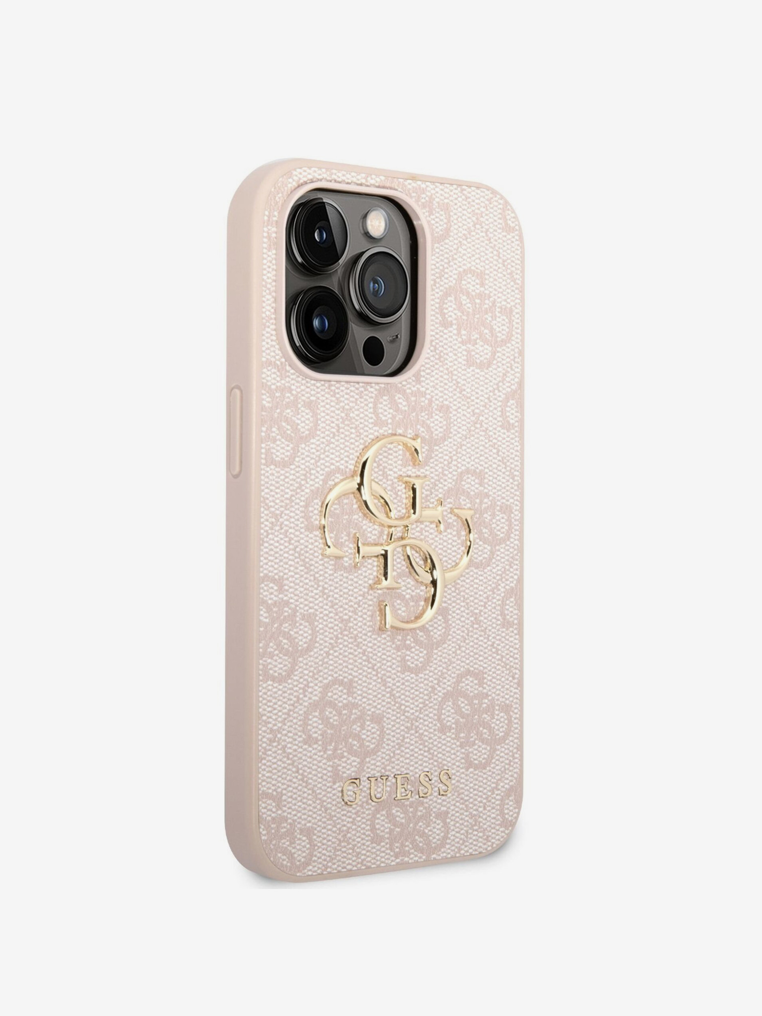 Guess PU 4G Metal Logo Back Cover pentru iPhone 13 Pro Max Roz