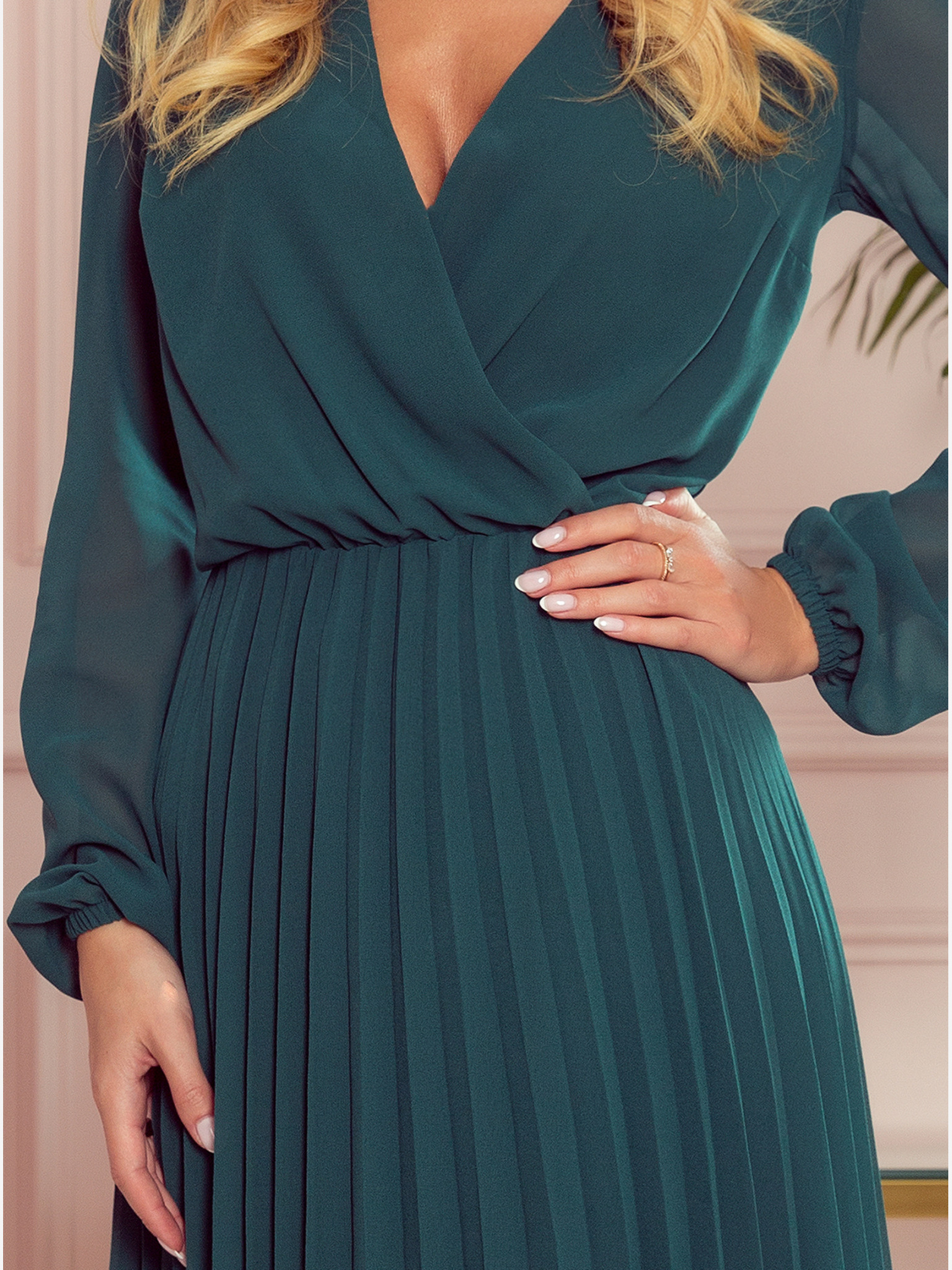 Rochie confortabilă plisată - verde Numoco LUCY