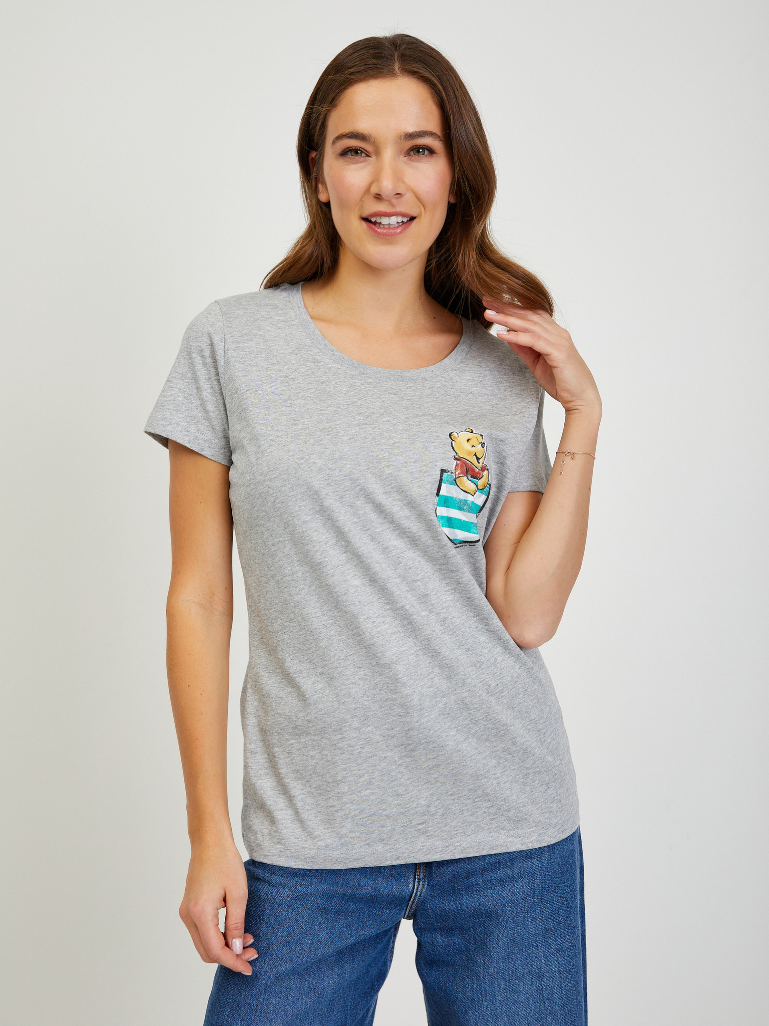 Tricou scurt gri pentru femei cu mânecă scurtă ORSAY