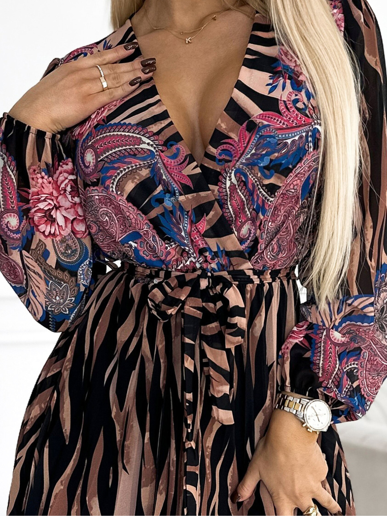 296-13 VICTORIA Rochie Boho cu model trapezoidal și imprimeu mediteranean
