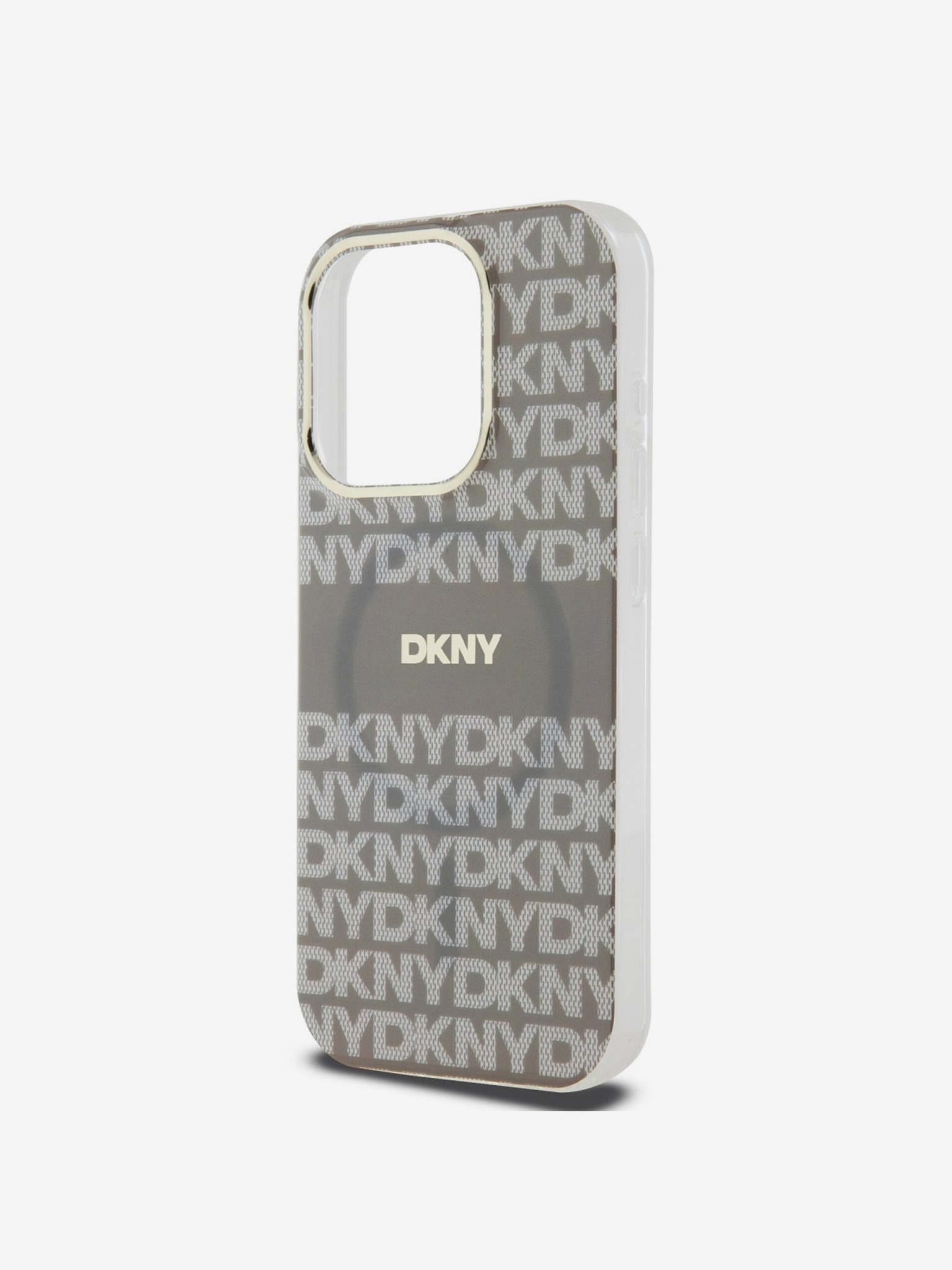 PC/TPU Repeat Pattern Tonal Stripe Magsafe Back Cover pentru iPhone 15 bej DKNY