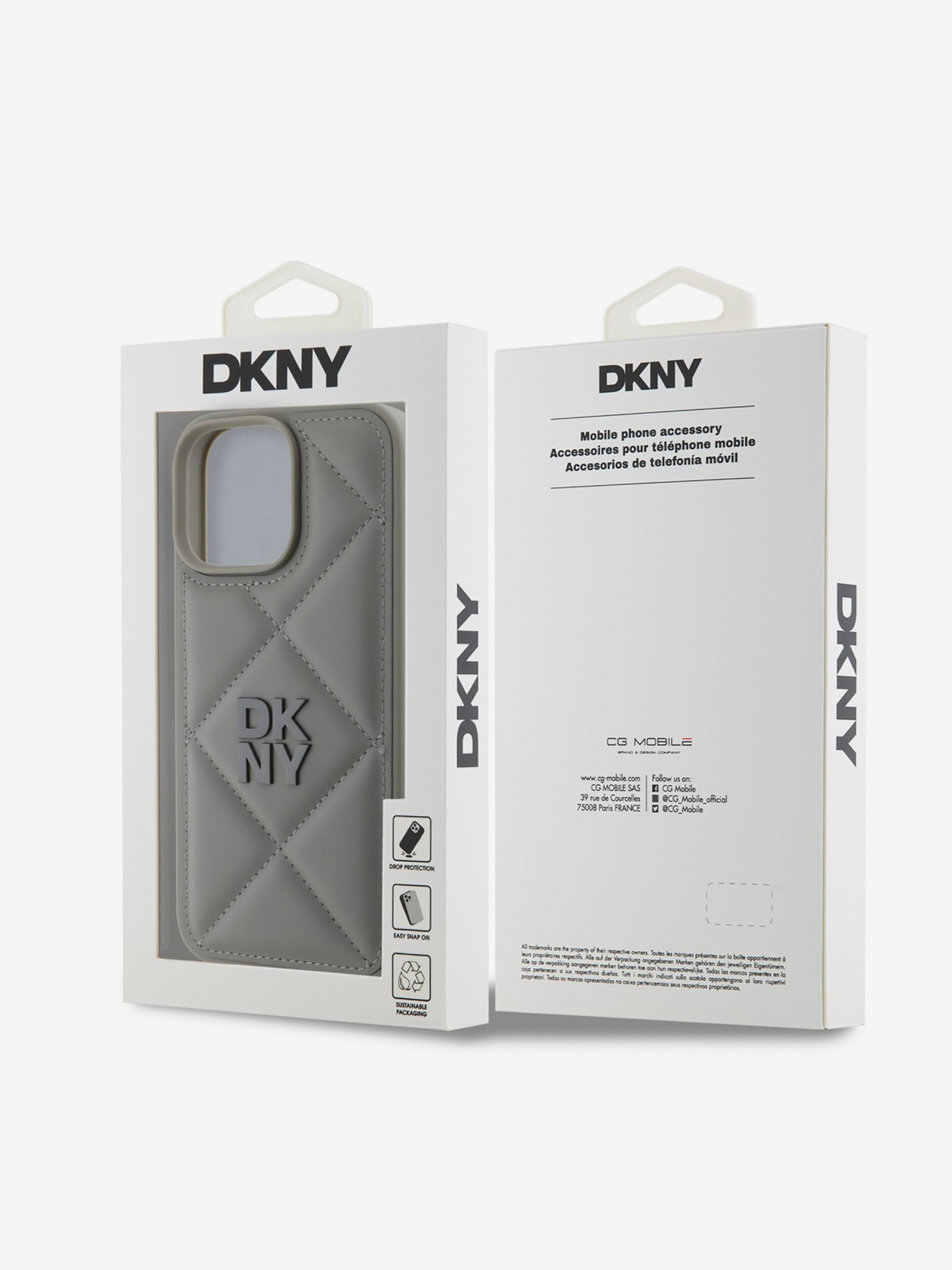 DKNY PU Leather Repeat Pattern Tonal Stripe Back Cover pentru iPhone 16 Pro Bej