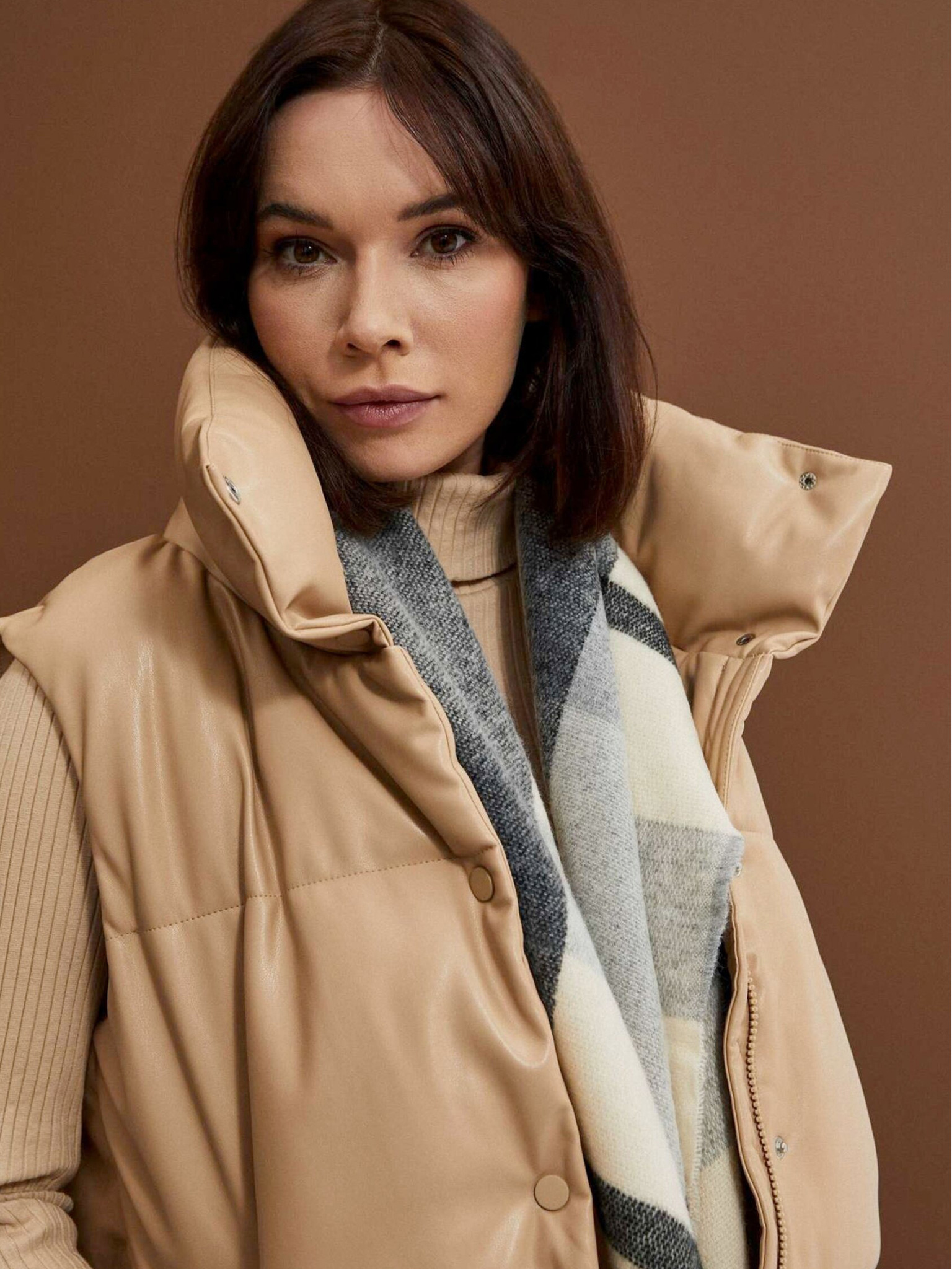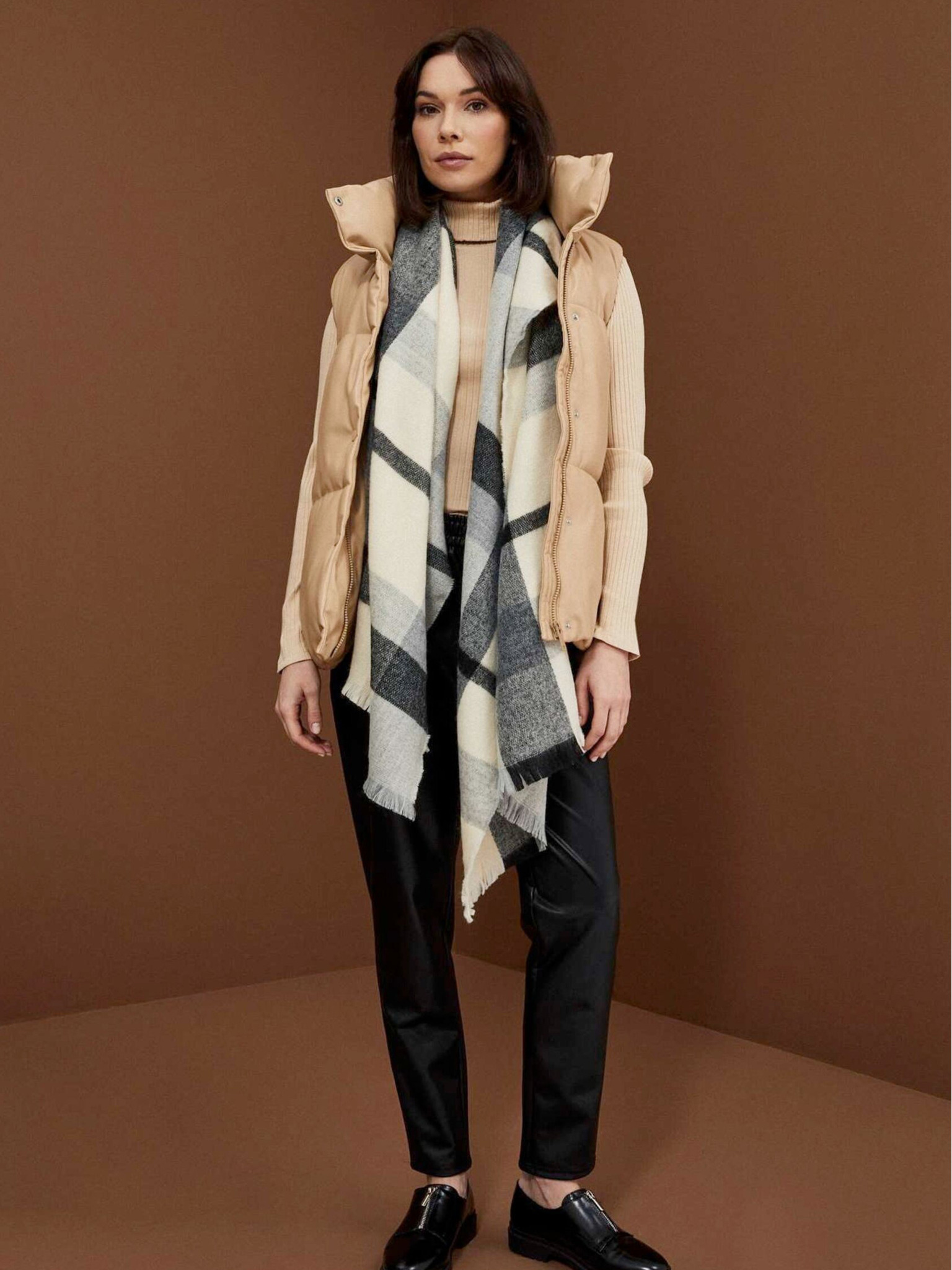 Eșarfă Moodo pentru femei cu model maro și negru