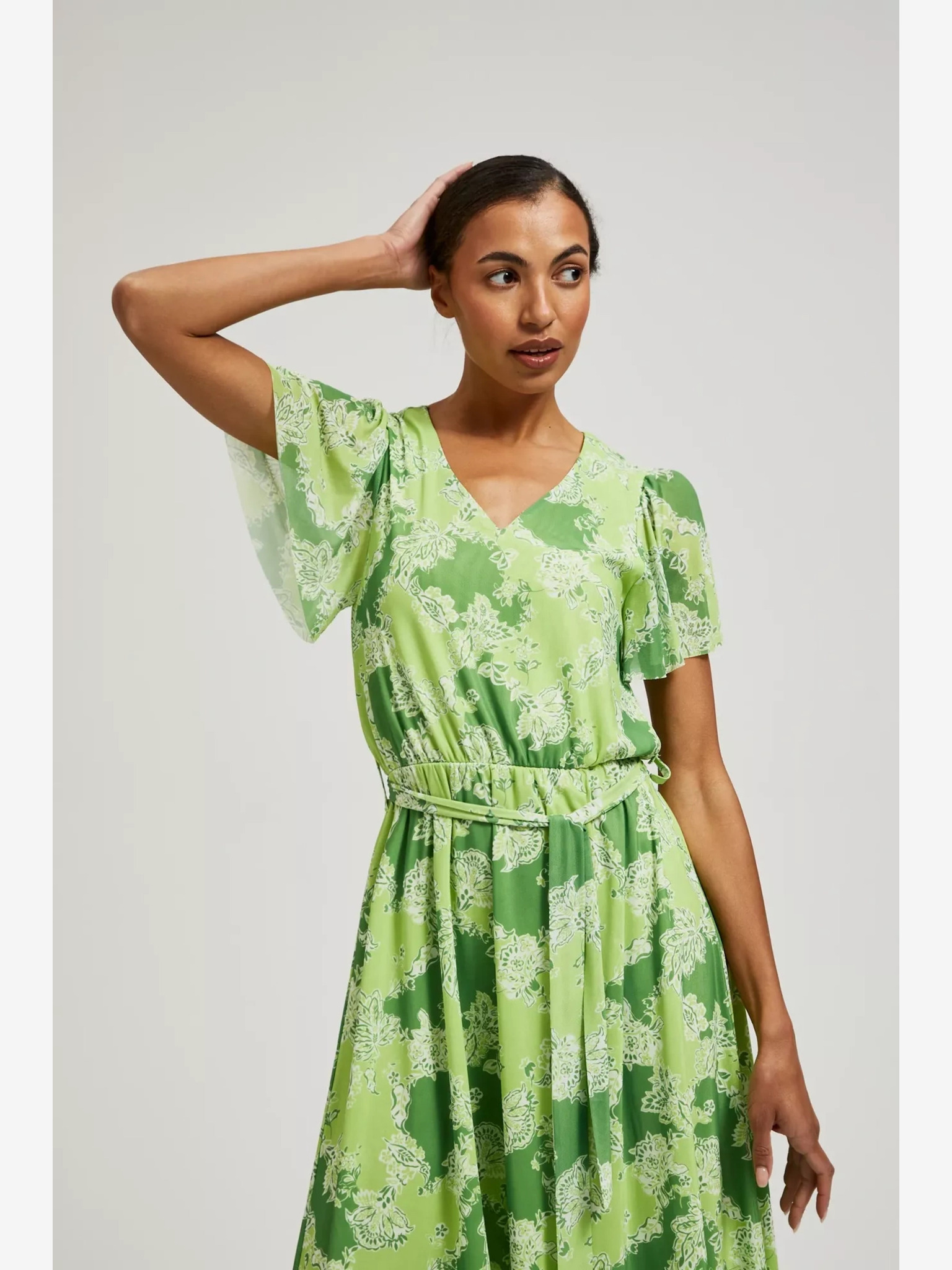 Rochie verde din viscoză cu volane Moodo