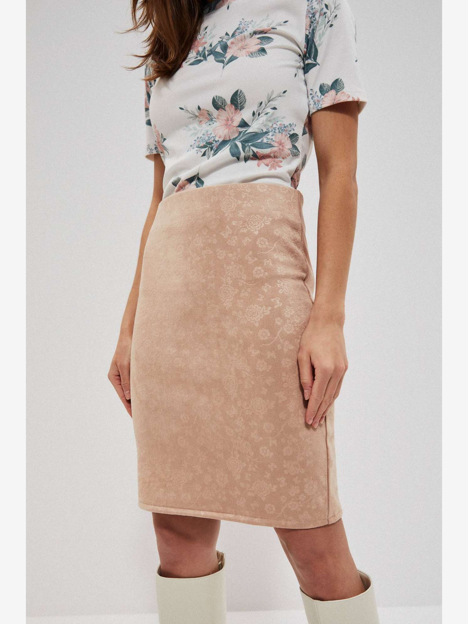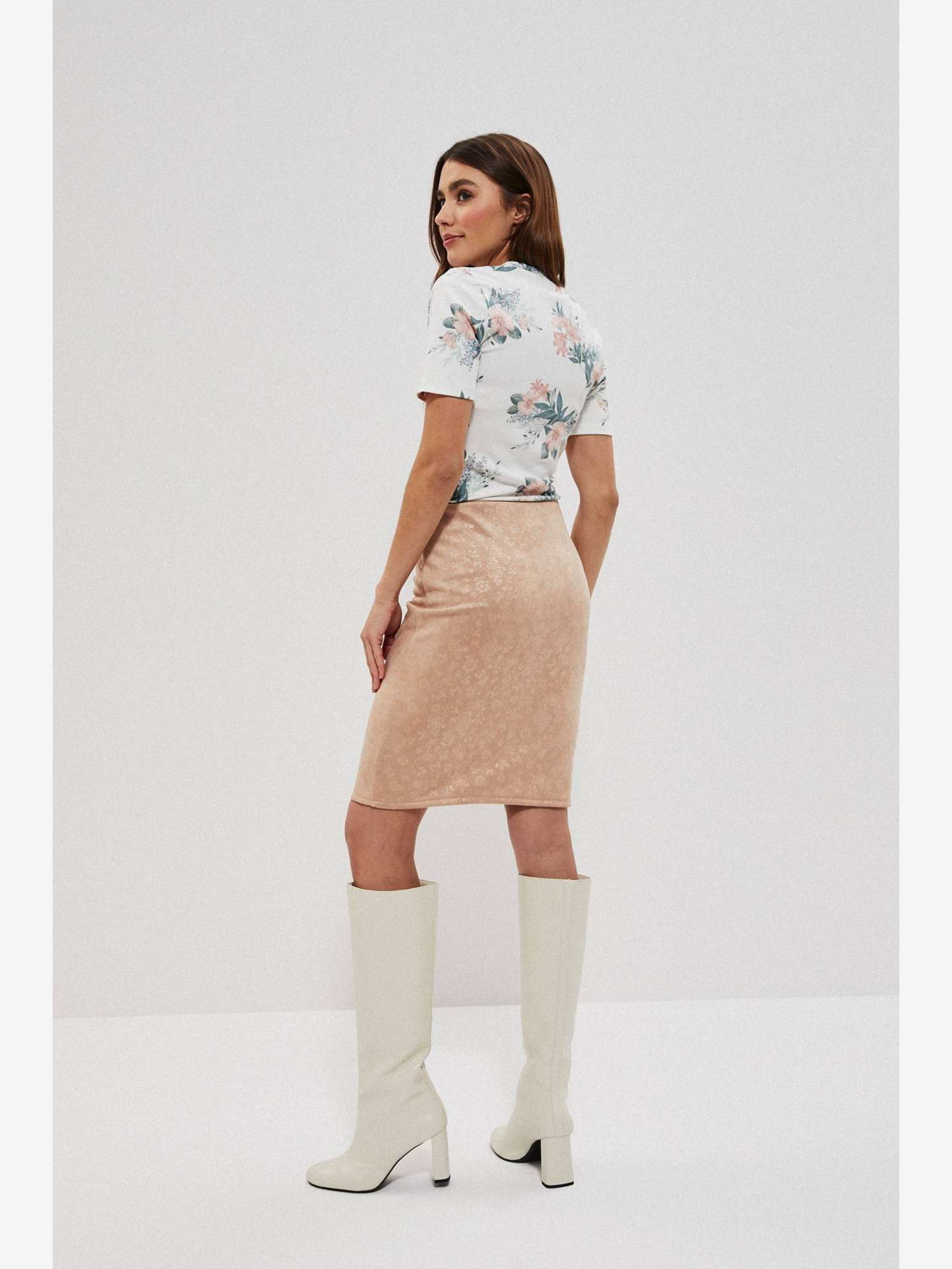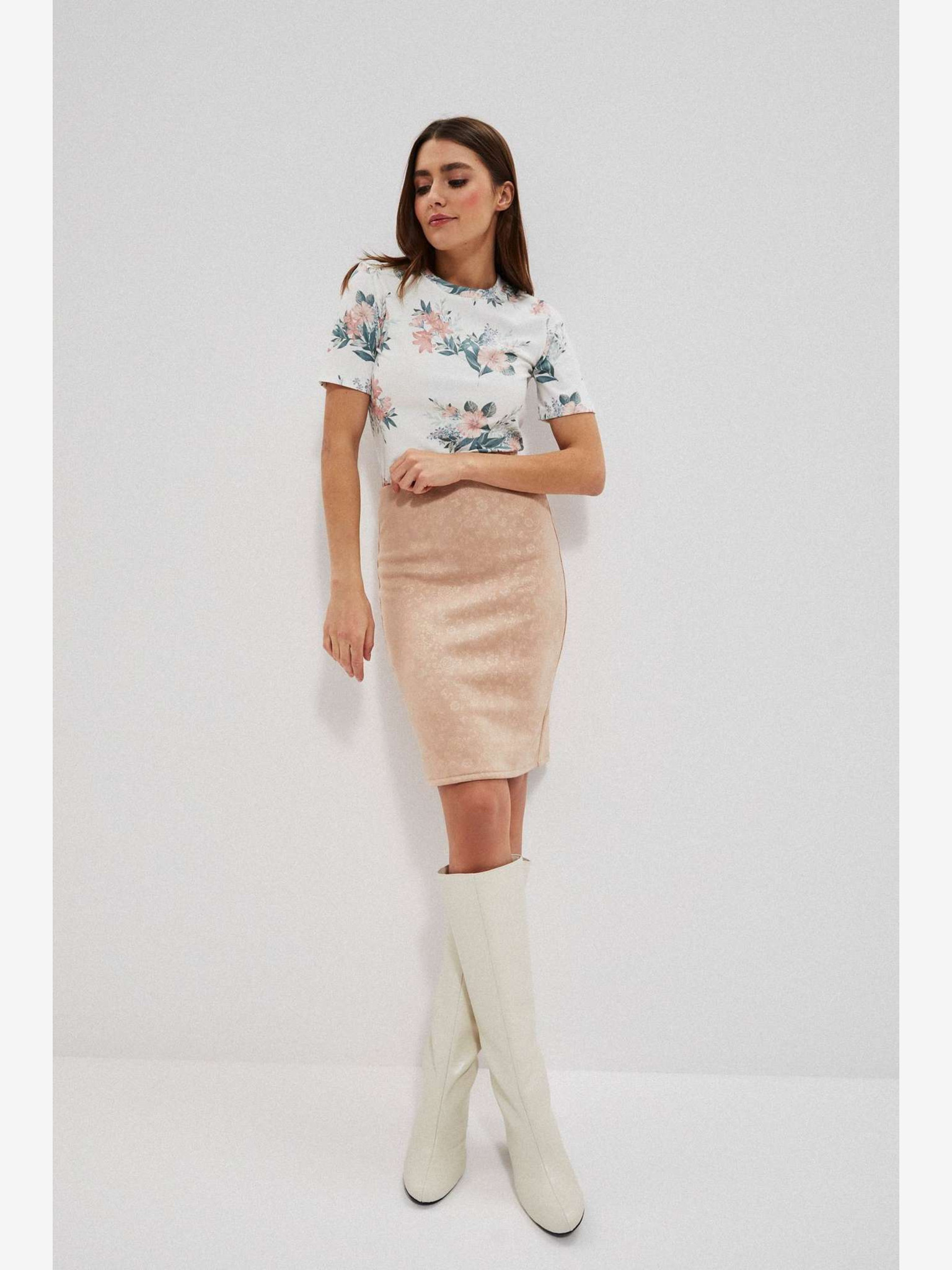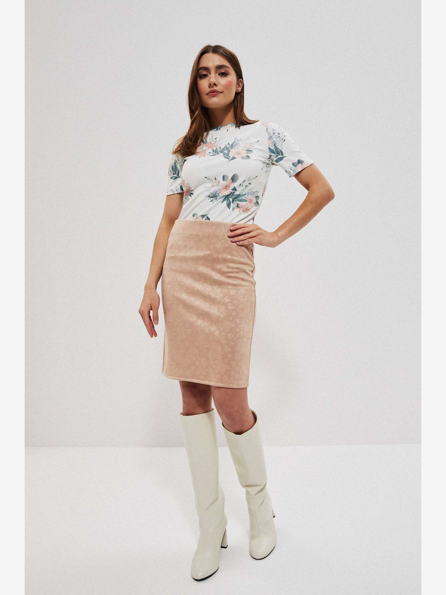 Fustă plisată cu model, bej, pentru femei Moodo