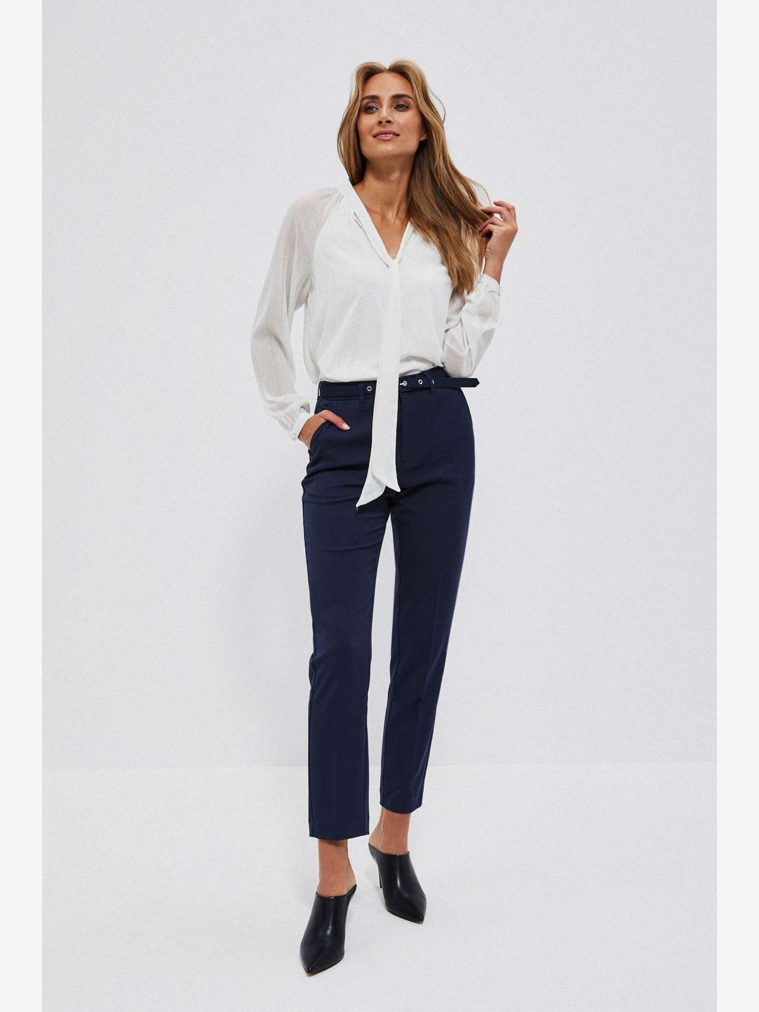Pantaloni cu curea pentru femei, albastru închis Moodo