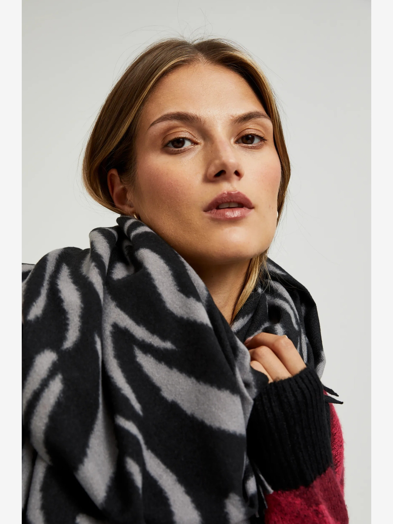 Eșarfă cu model pentru femei albă și neagră Moodo