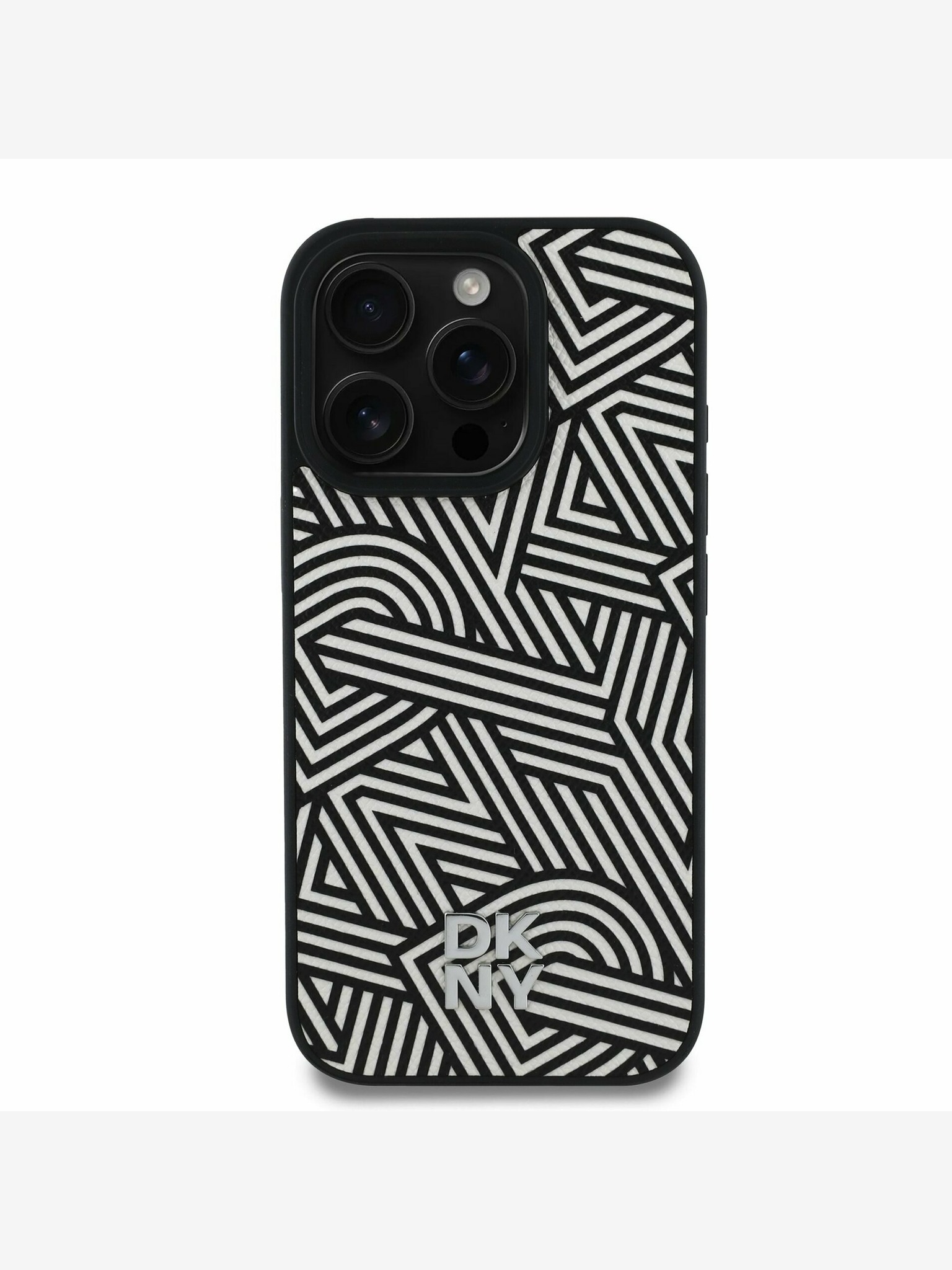 DKNY PC/TPU Repeat Pattern Tonal Stripe Magsafe Back Cover pentru iPhone 16 negru