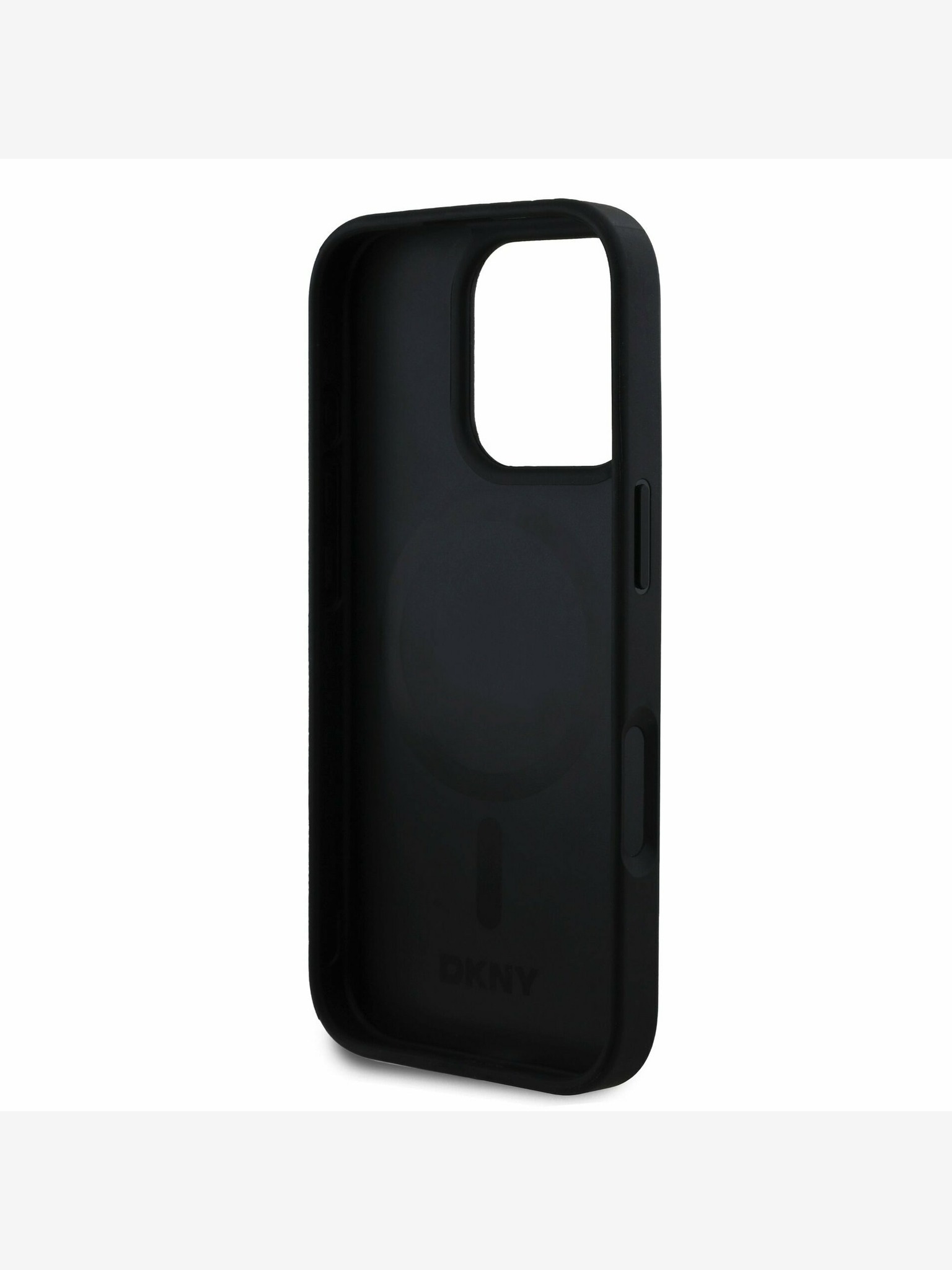 DKNY PU Leather Stack Logo Wrist Strap Back Cover pentru iPhone 16 Pro Max negru
