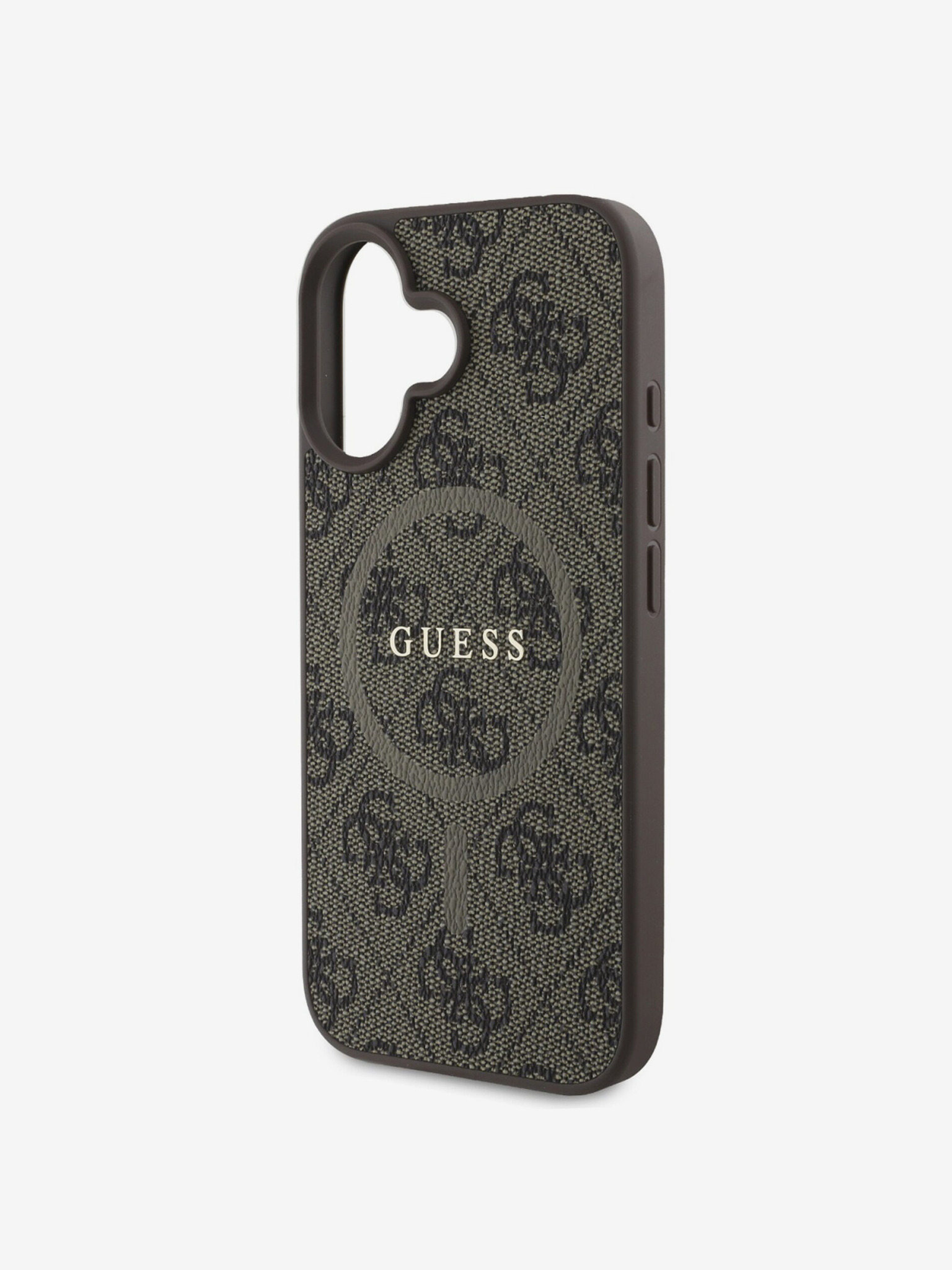 Guess PU Piele 4G Inel Colorat Curea MagSafe Carcasă Foto pentru iPhone 15 Maro
