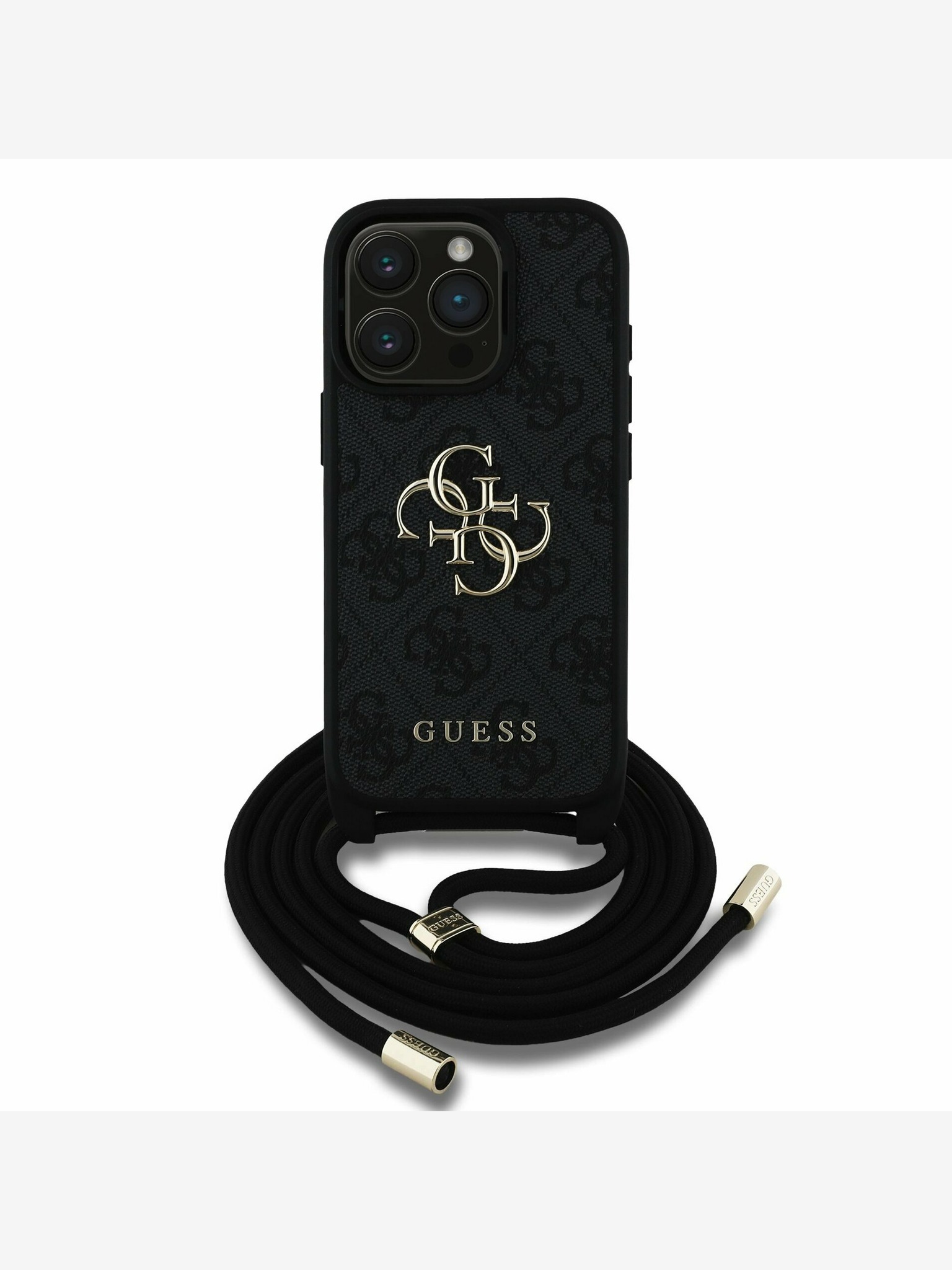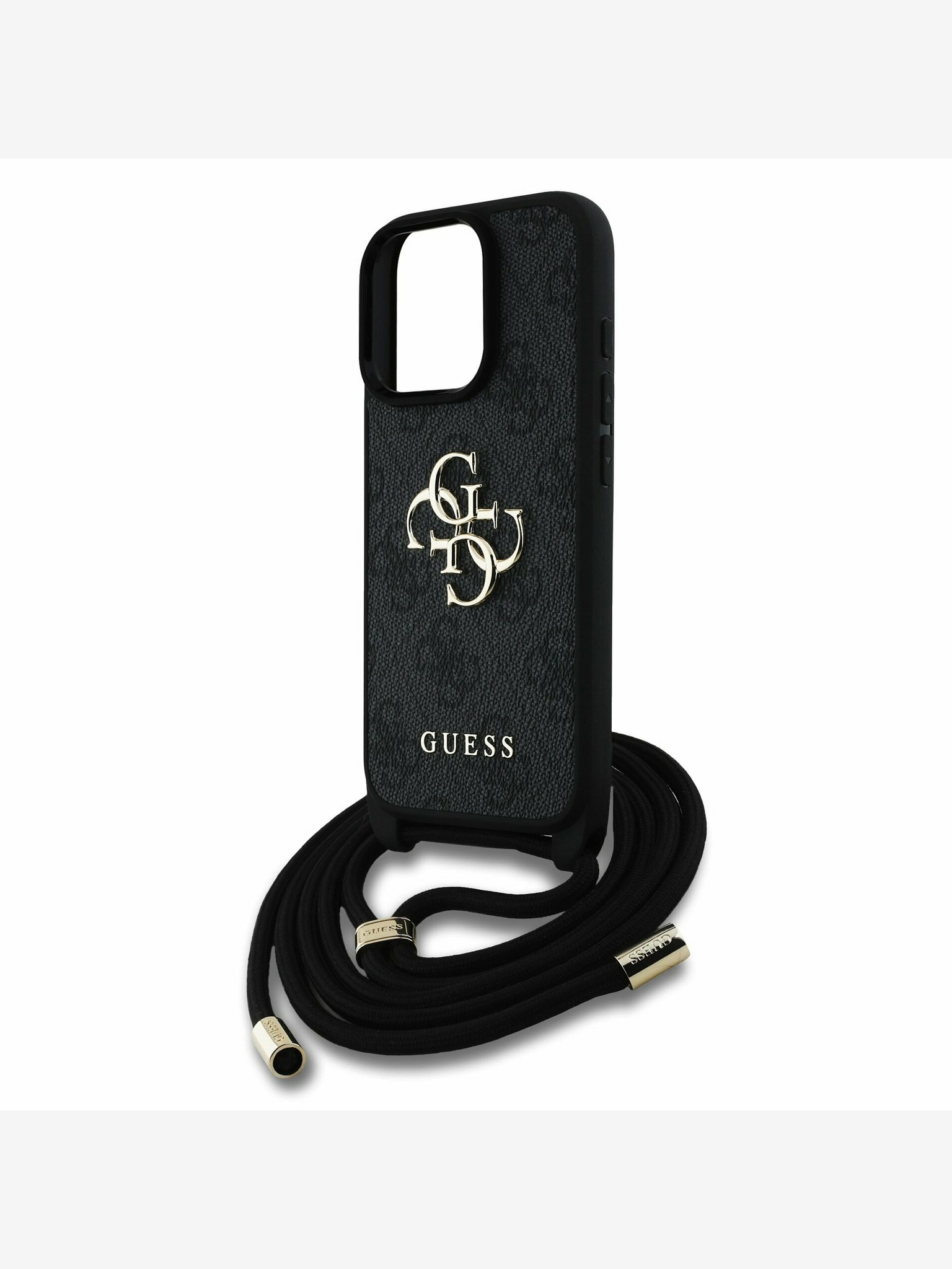 Guess PU Piele 4G Inel Colorat Curea MagSafe Carcasă Spate pentru iPhone 16 Negru