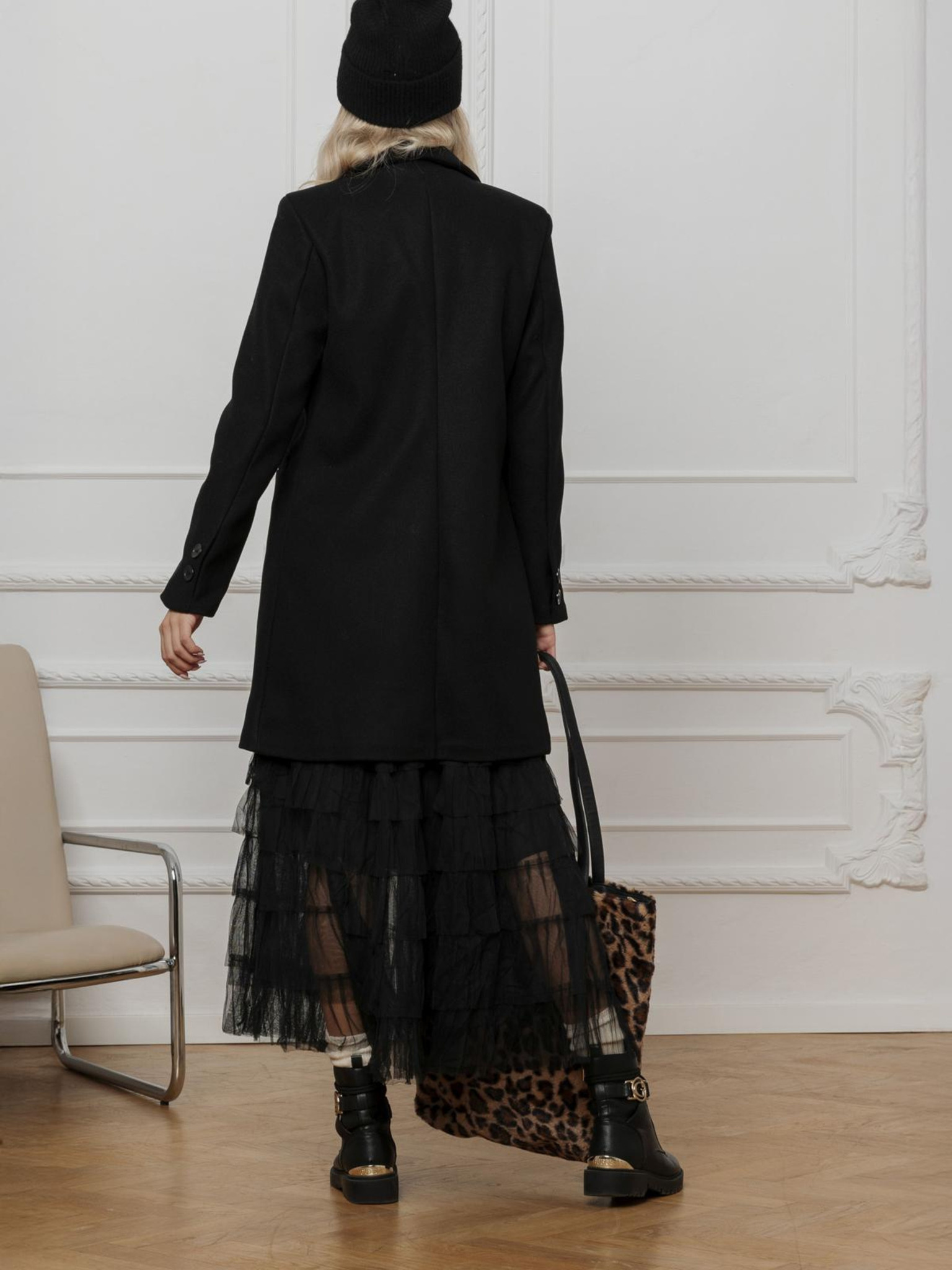 Palton negru de damă cu amestec din lână ORSAY