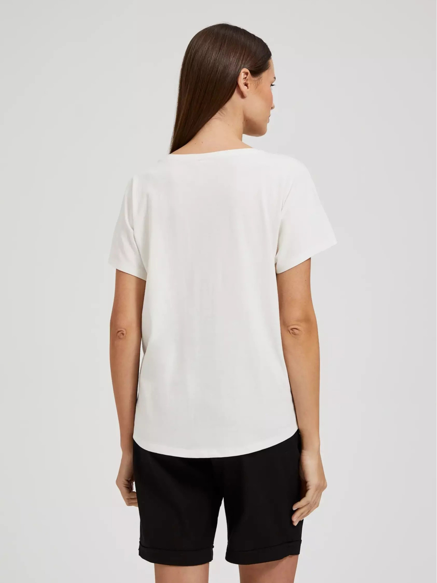 Tricou de damă cu decolteu decorat – alb