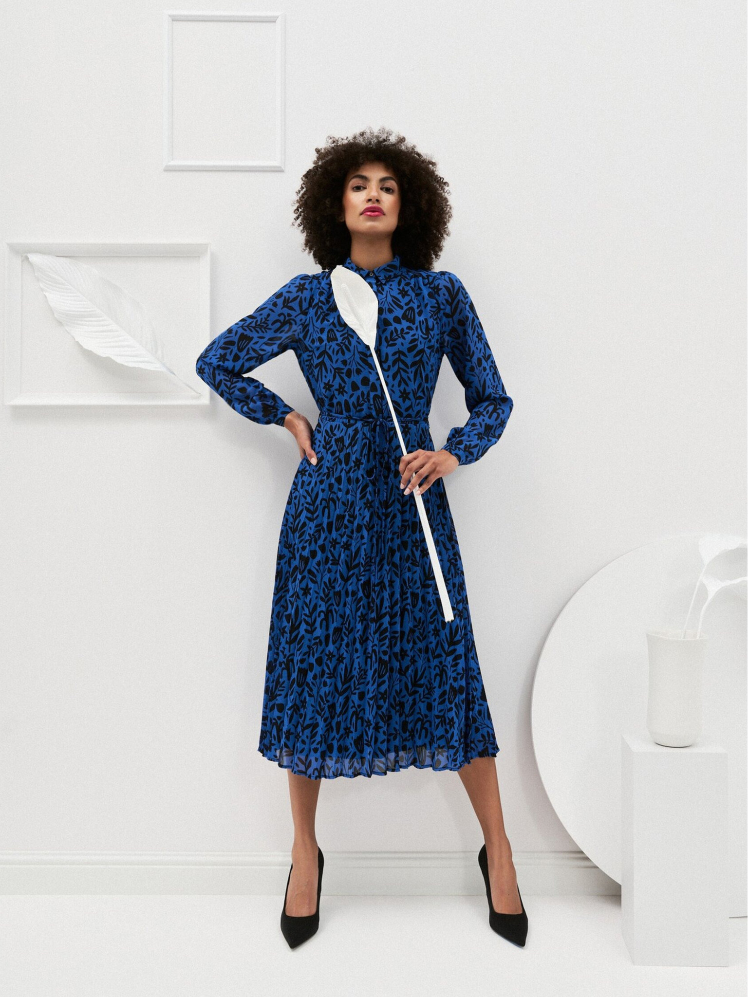 Rochie midi din satin cu model albastru pentru femei ORSAY
