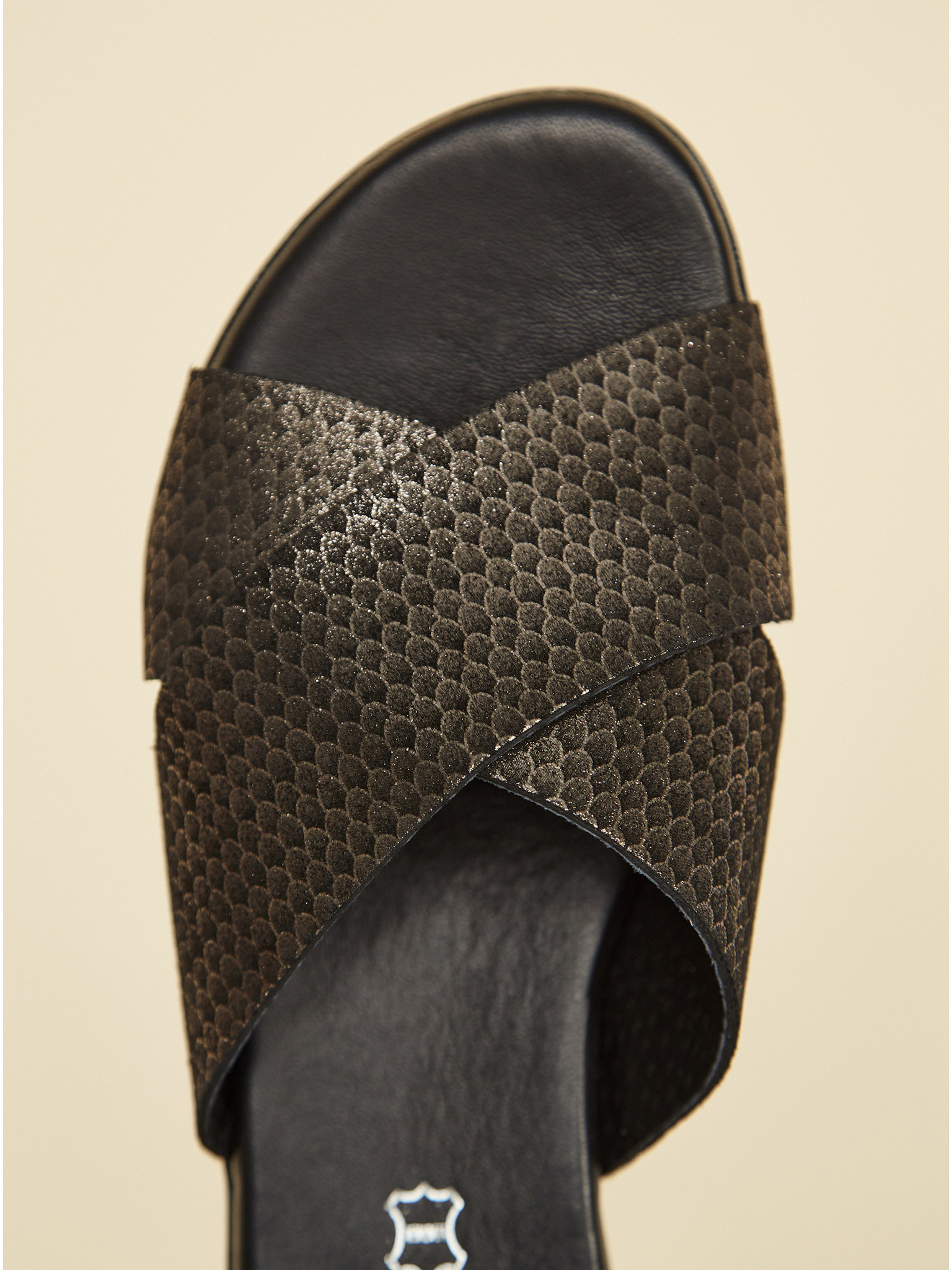 Papuci cu toc din piele negri pentru femei OJJU